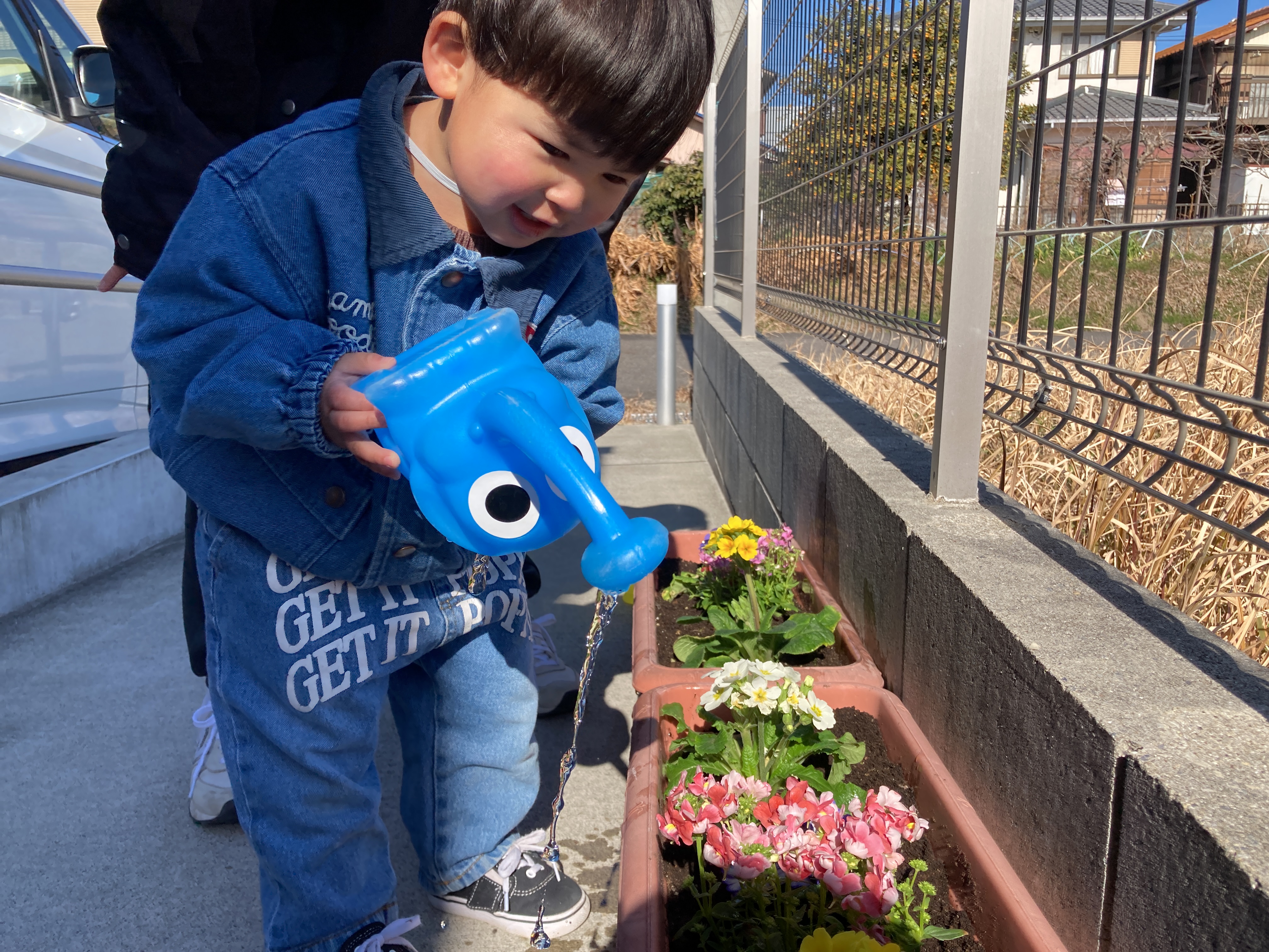 小さな手で土や花にそっと触れたり、嬉しそうにじょうろを持ったりする姿がかわいらしいですね。
