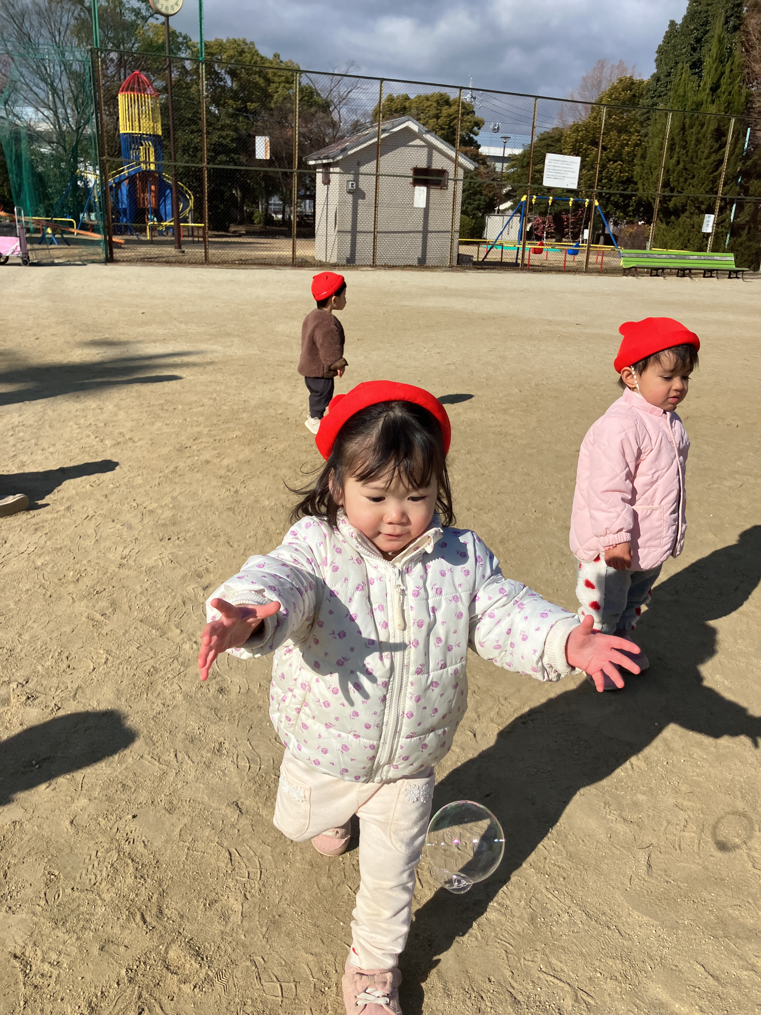 公園では落ち葉を探したり、シャボン玉をしたりして遊んでいます