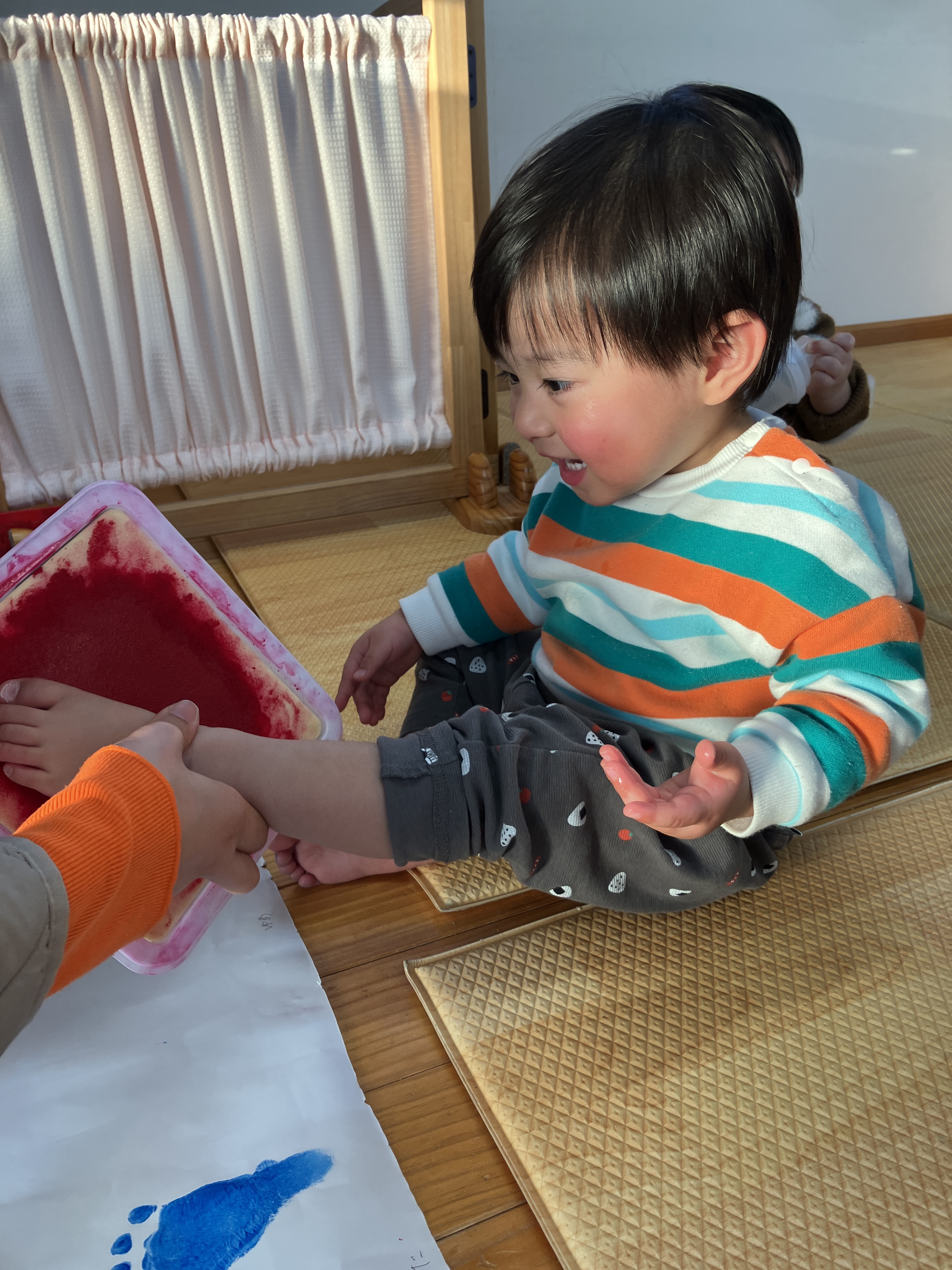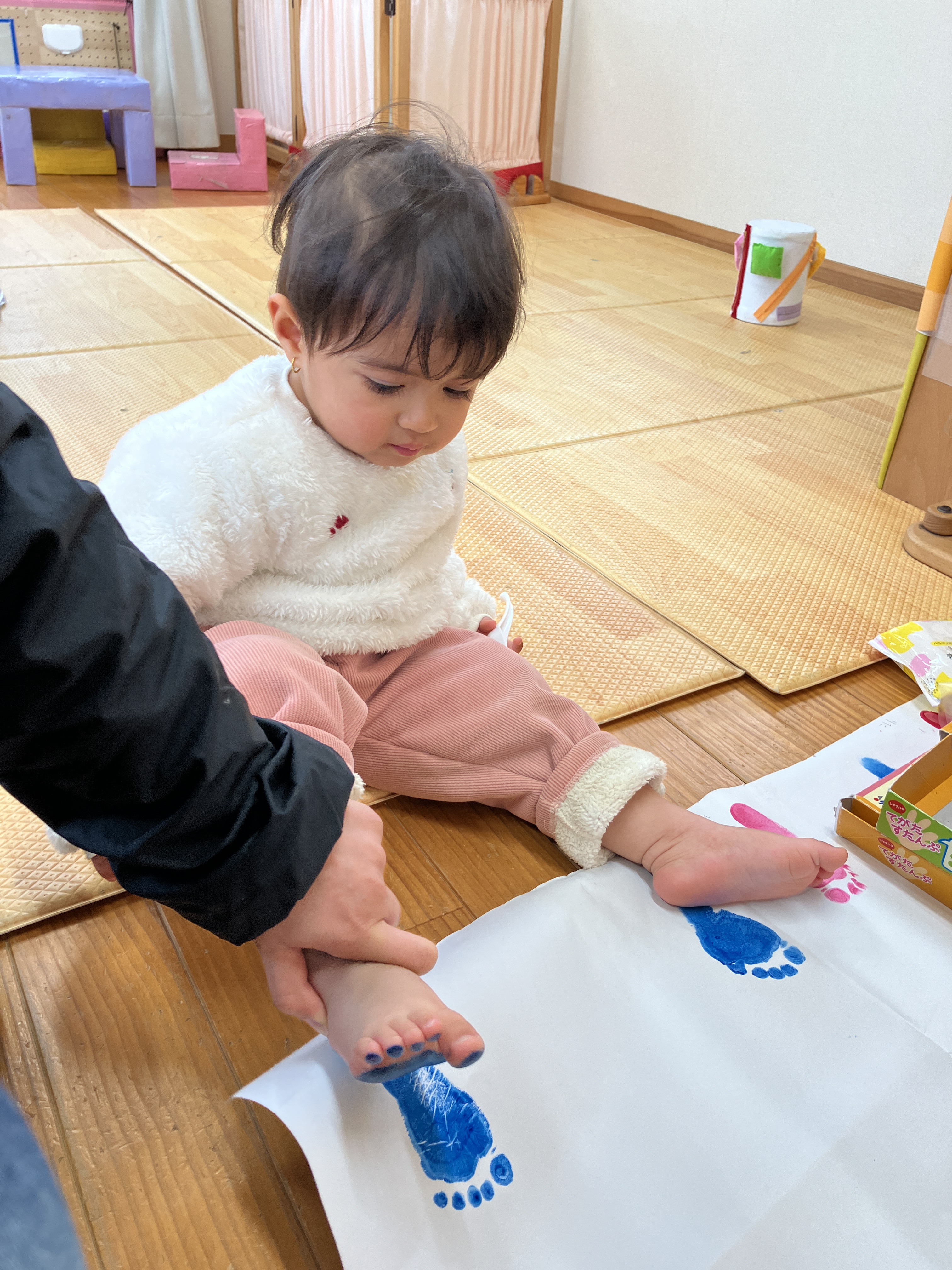 (みんなの足形を見ながらまだまだおぼつかない様子で歩いていたことが昨日のように思い出され‘‘おおきくなったなあ、、‘‘と感慨深くなった担任でした