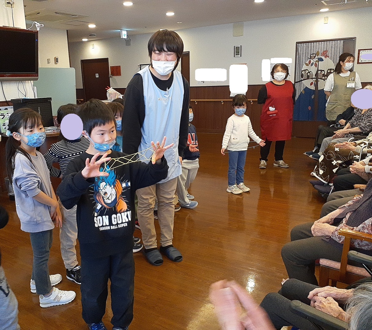 その後はみんなの得意「あやとりの技」を披露しました。