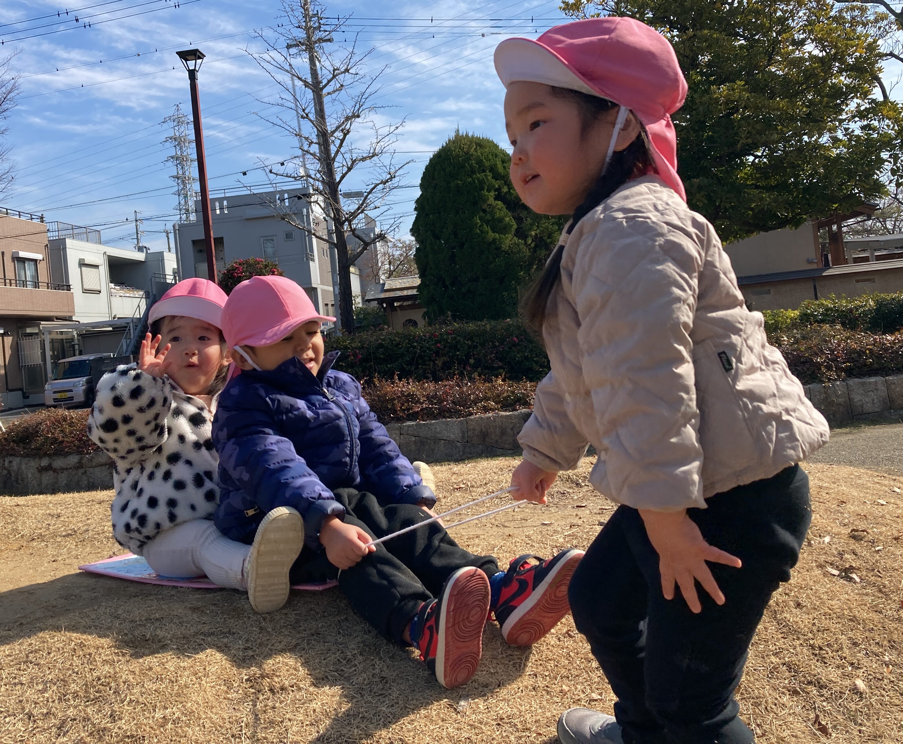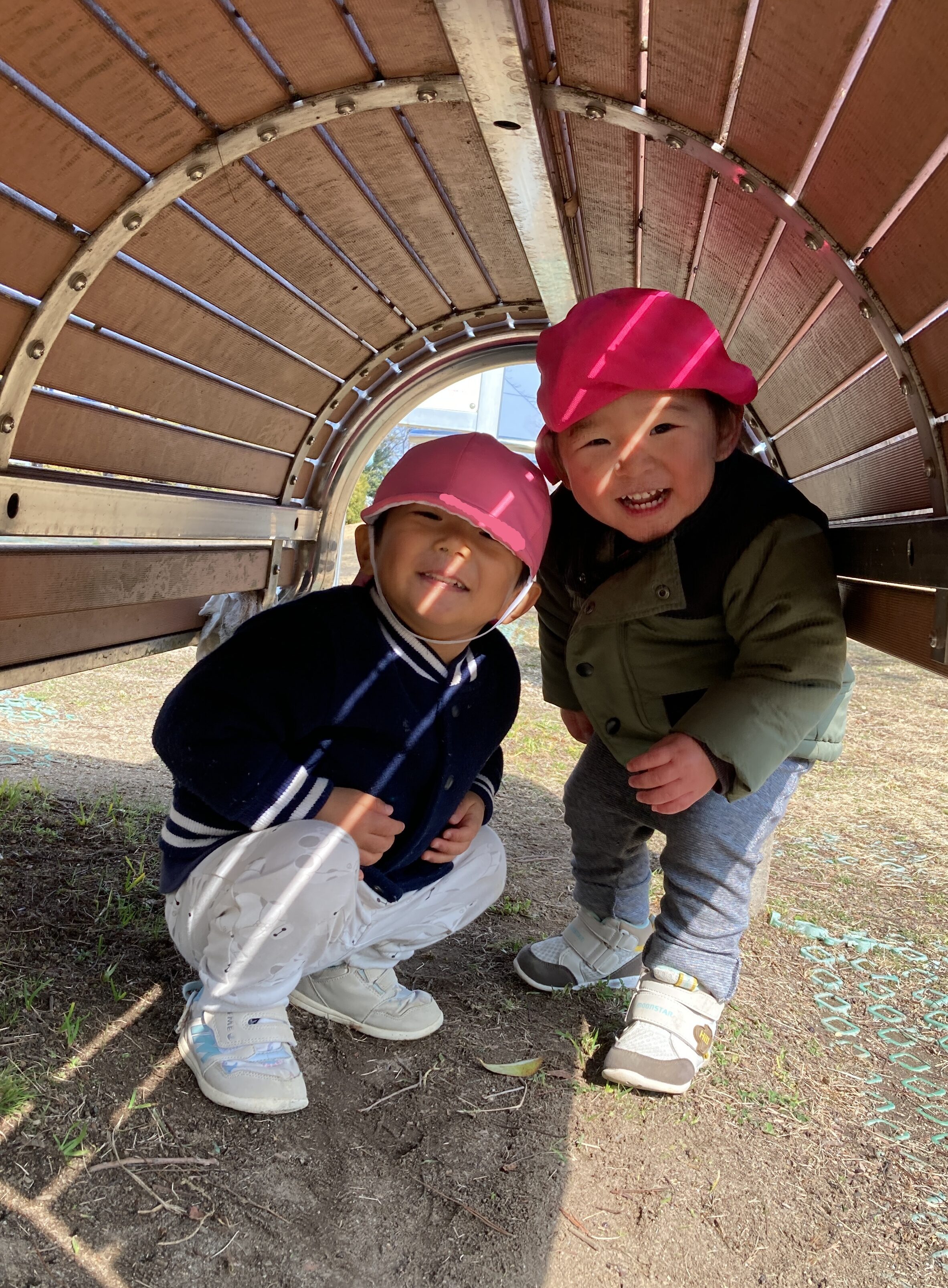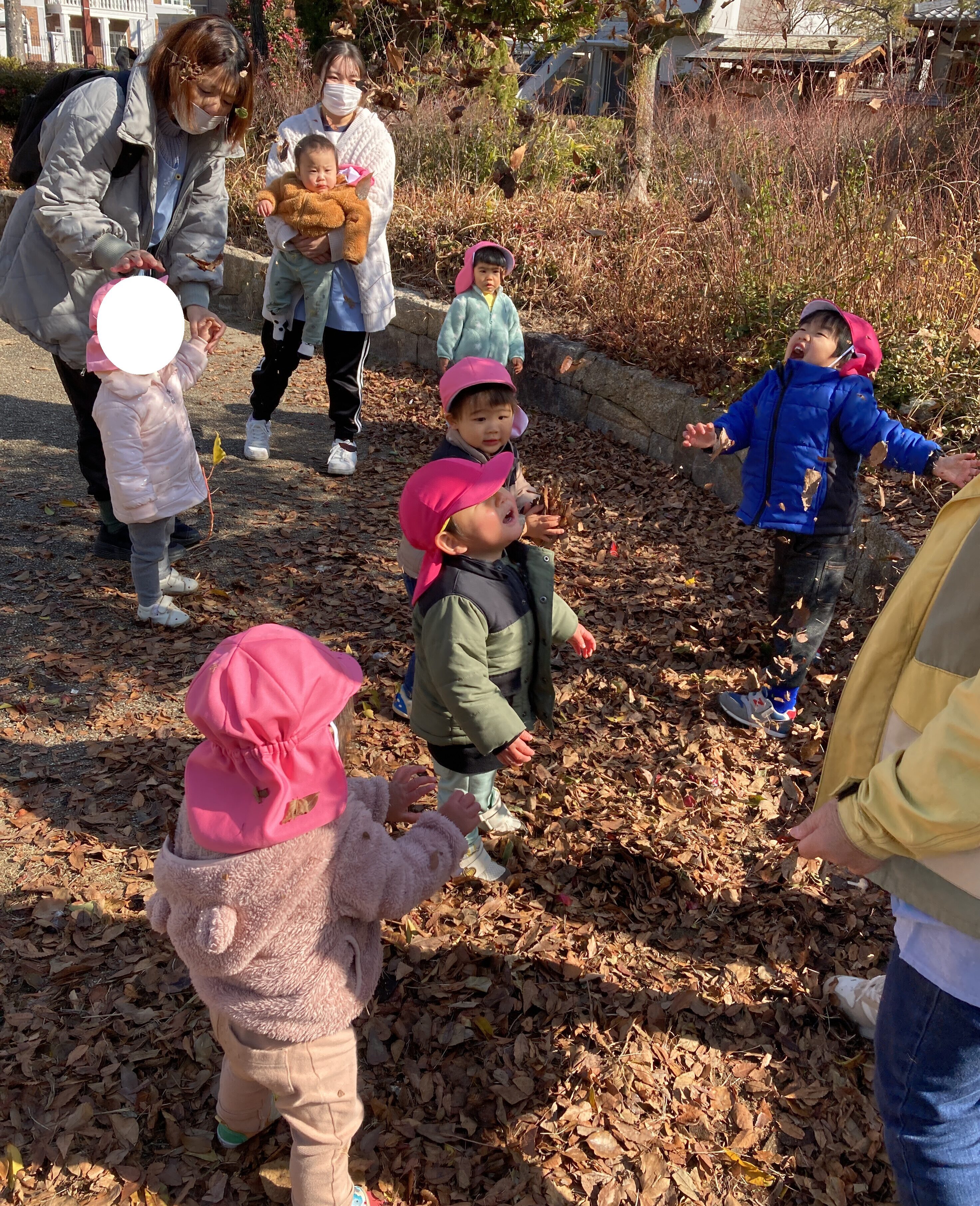 最近、0.1.2歳児みんなで森本中央公園に行く機会が増え、寒い中でも元気いっぱい遊んでいる子どもたち![]()