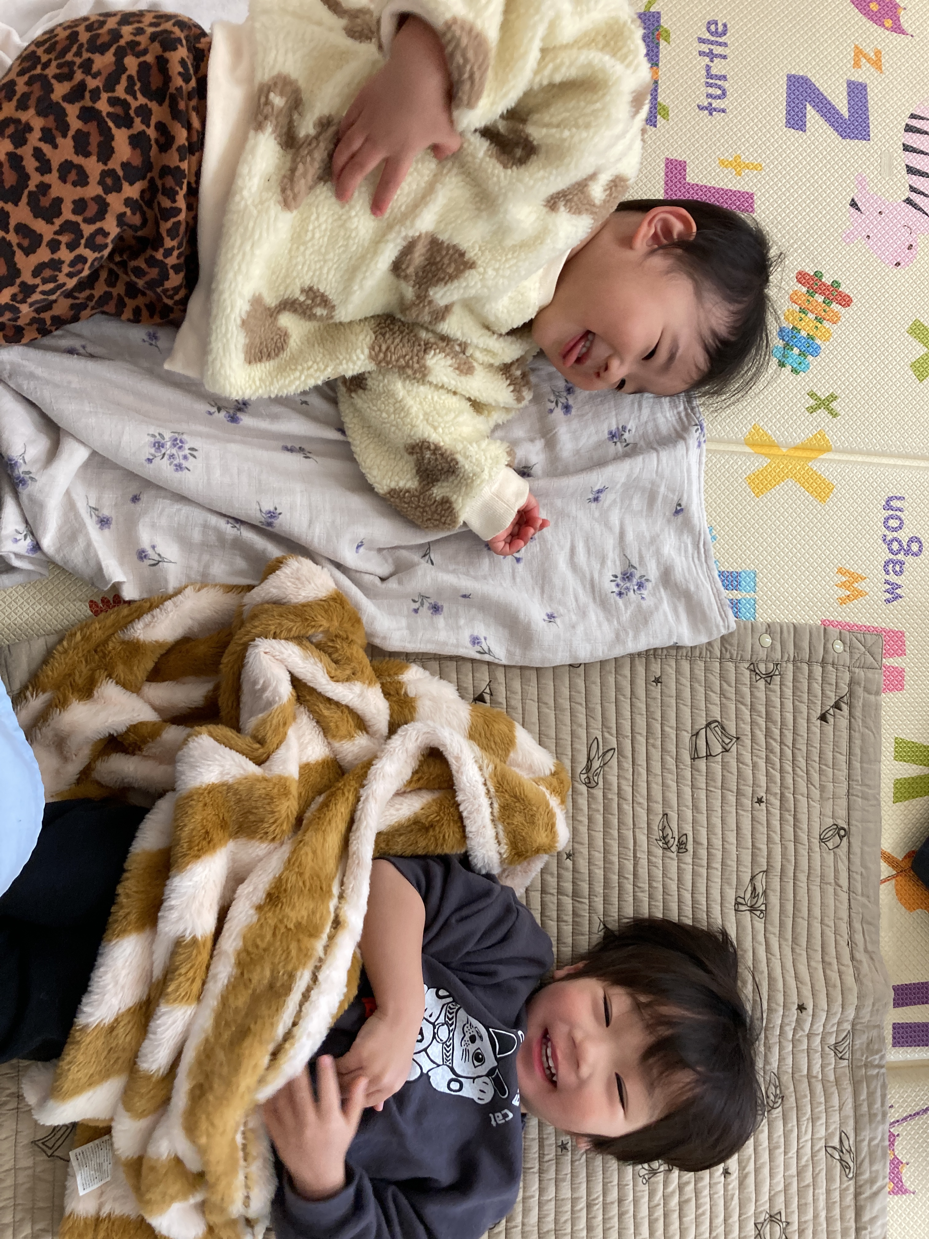 大きいお友達は、一人で敷いていますね![]()