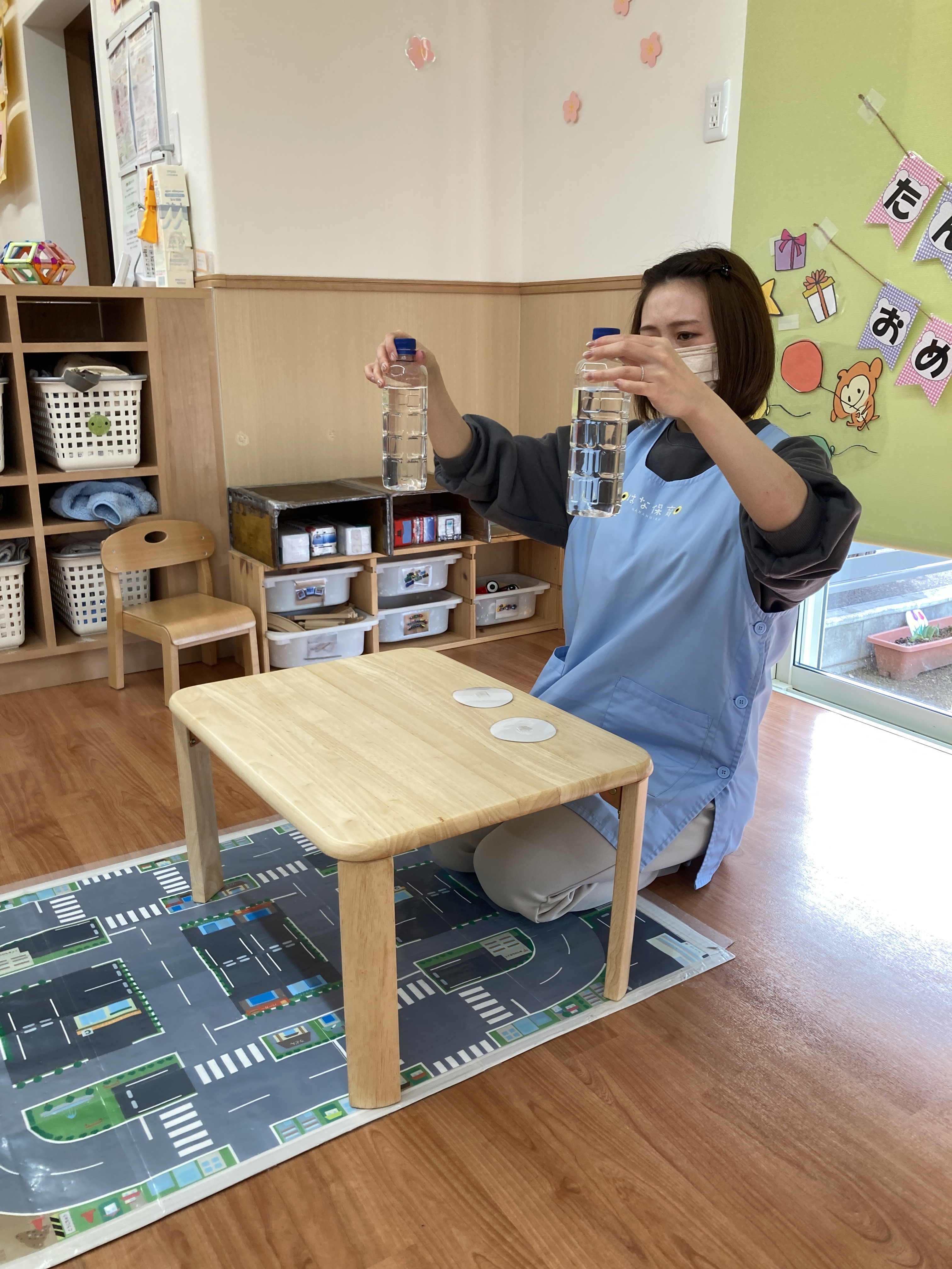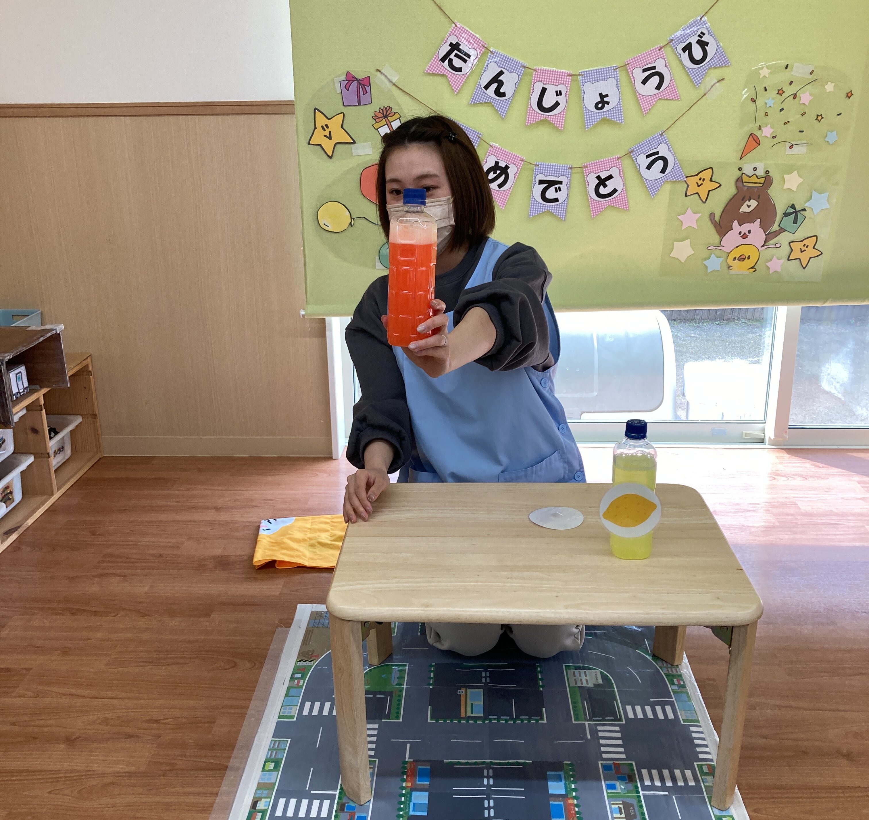 お誕生日会が終わったあとも「なんで~?」と不思議そうにジュースを眺める子どもたちでした