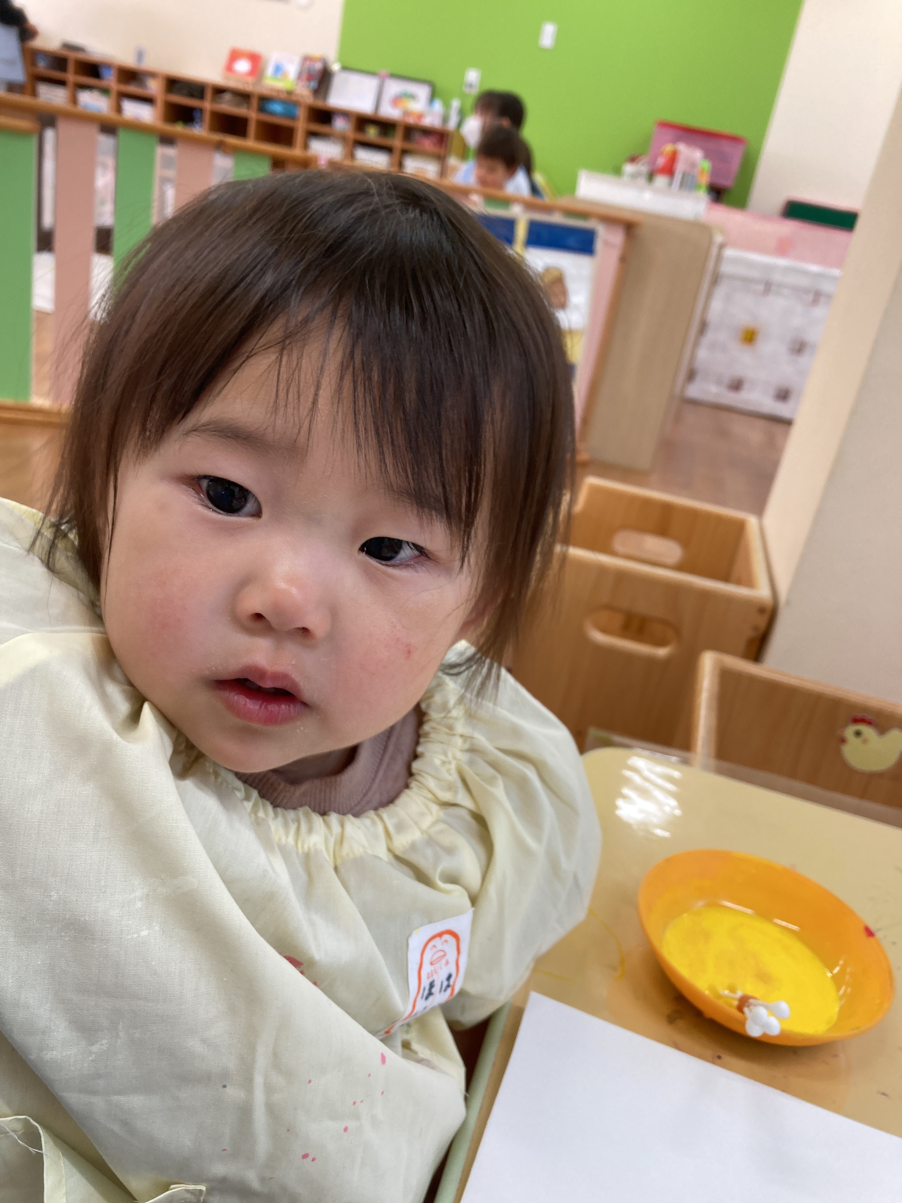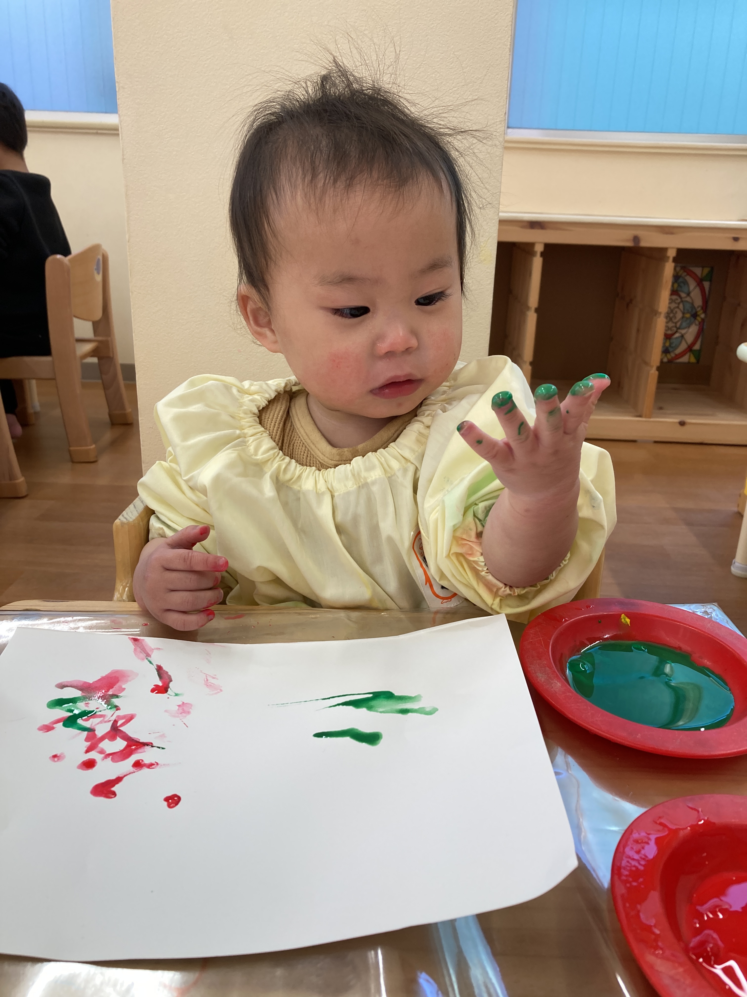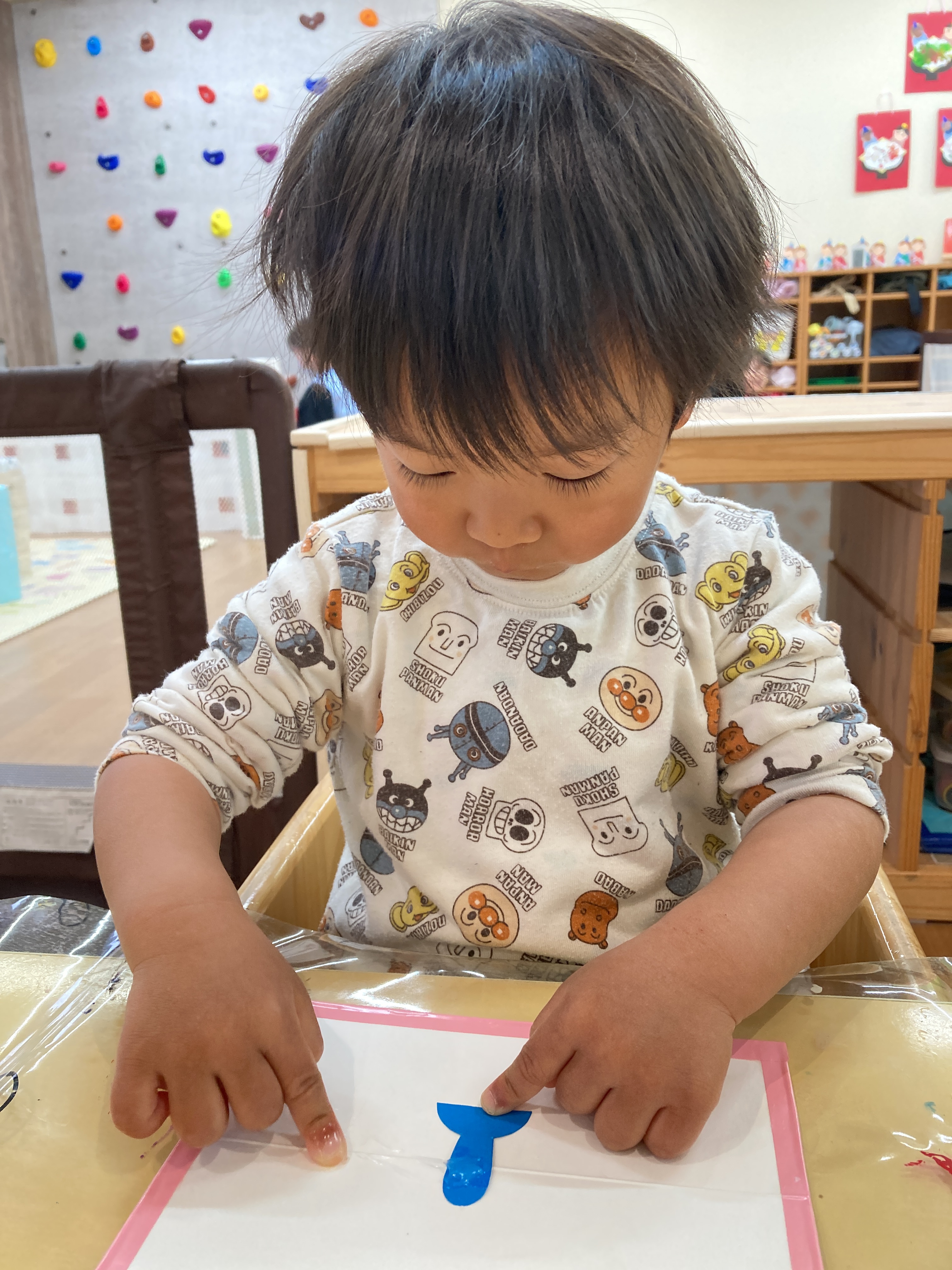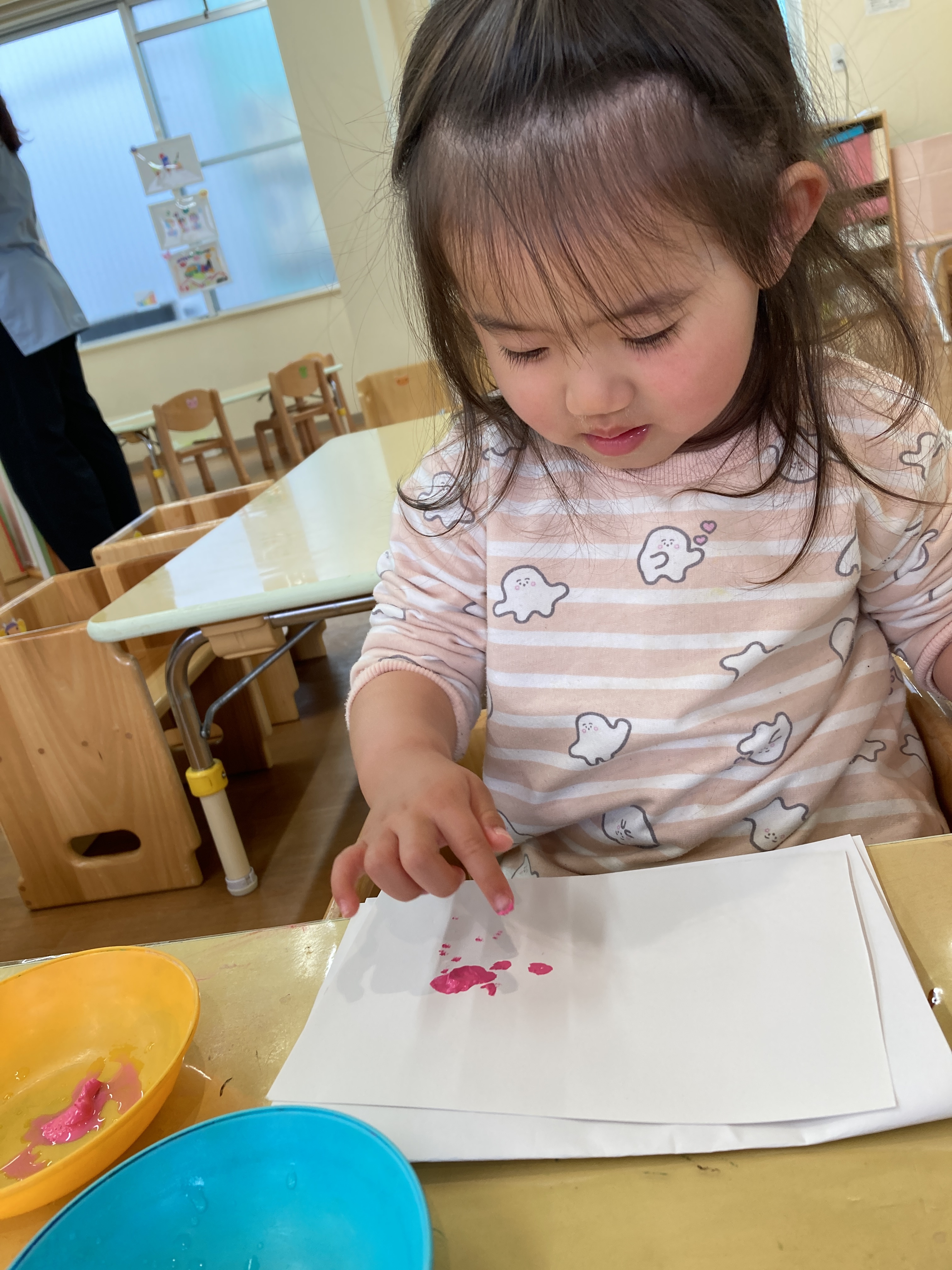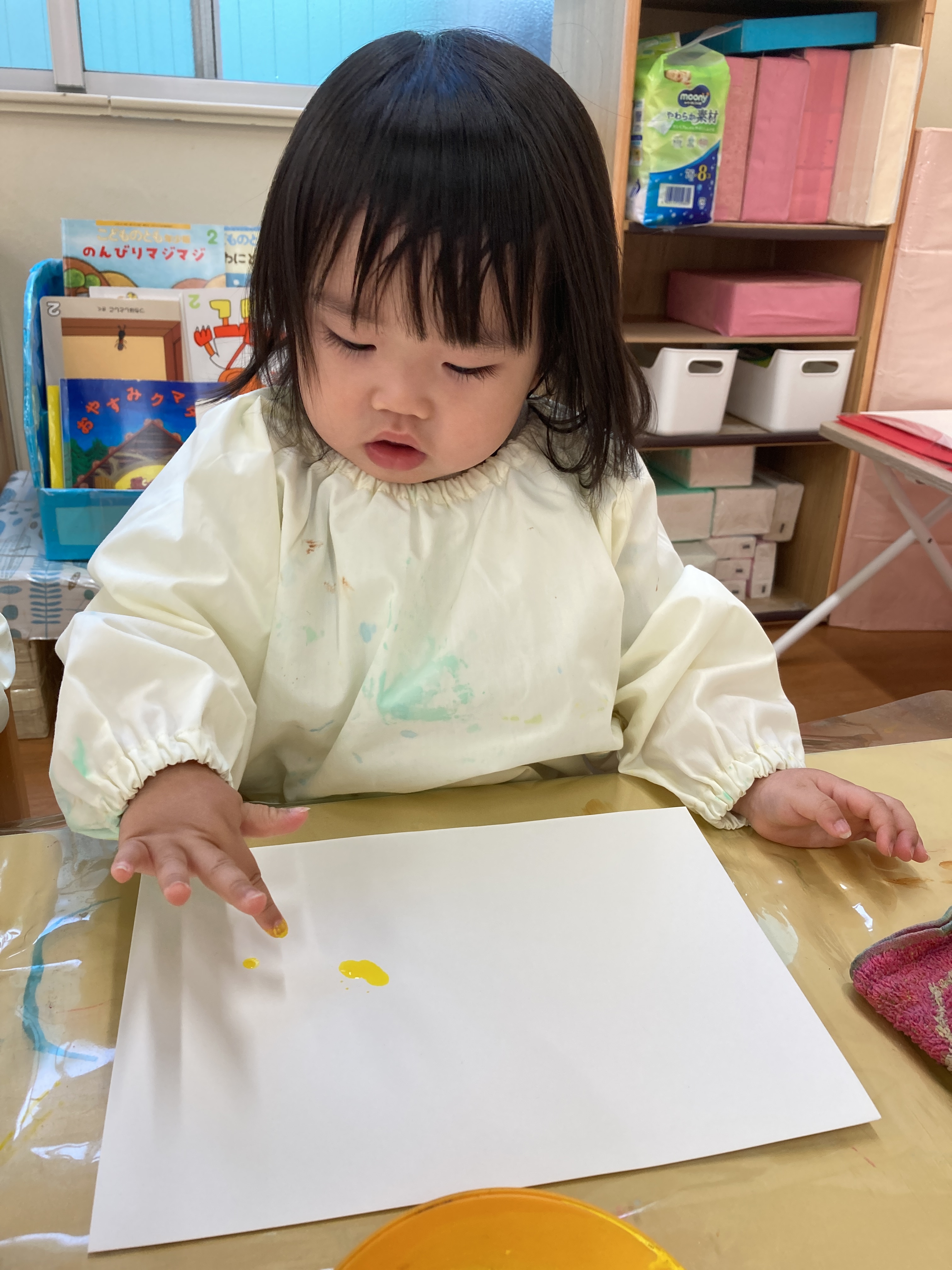 絵の具の感触を楽しみながらペタペタしていましたよ![]()