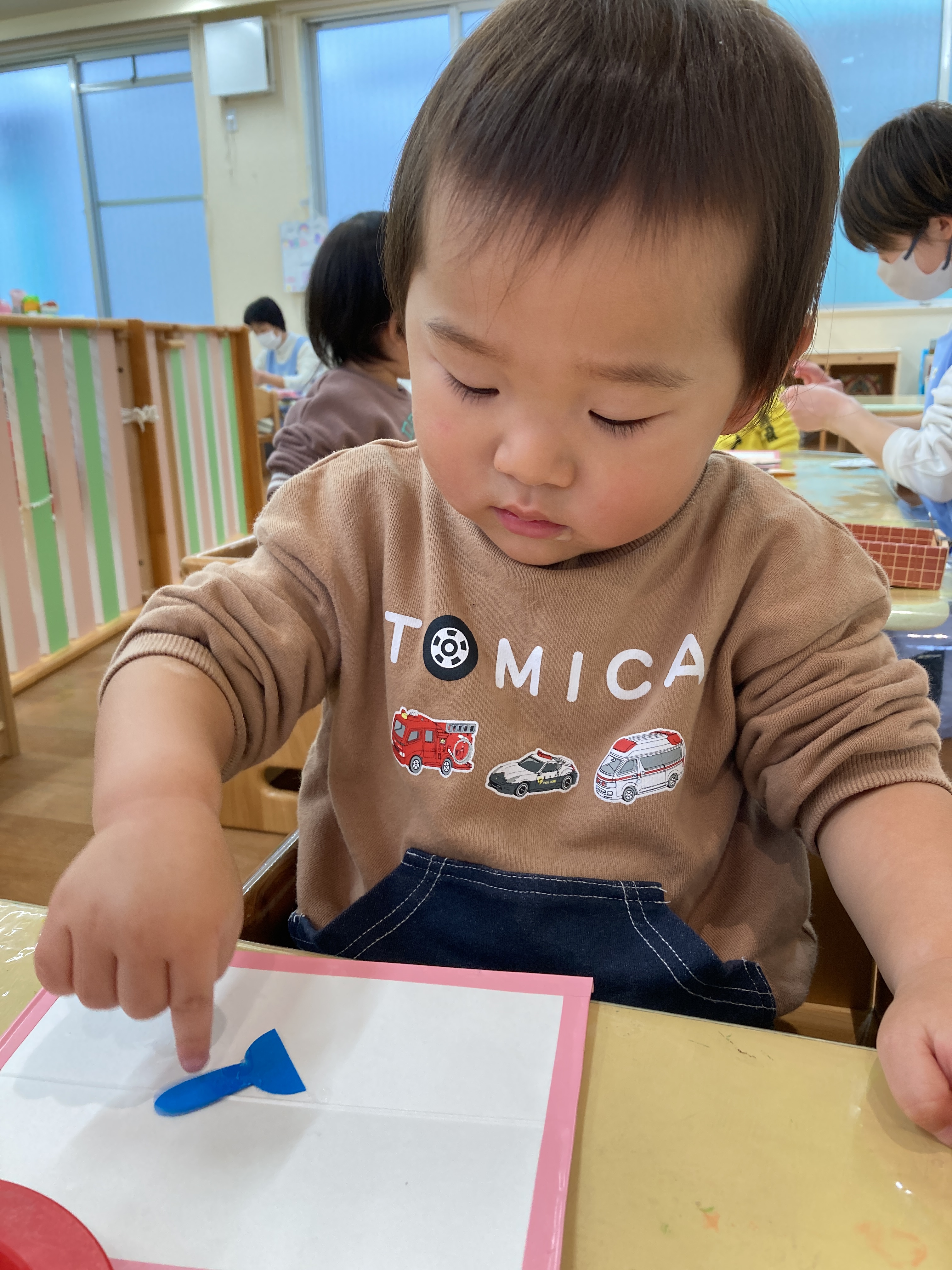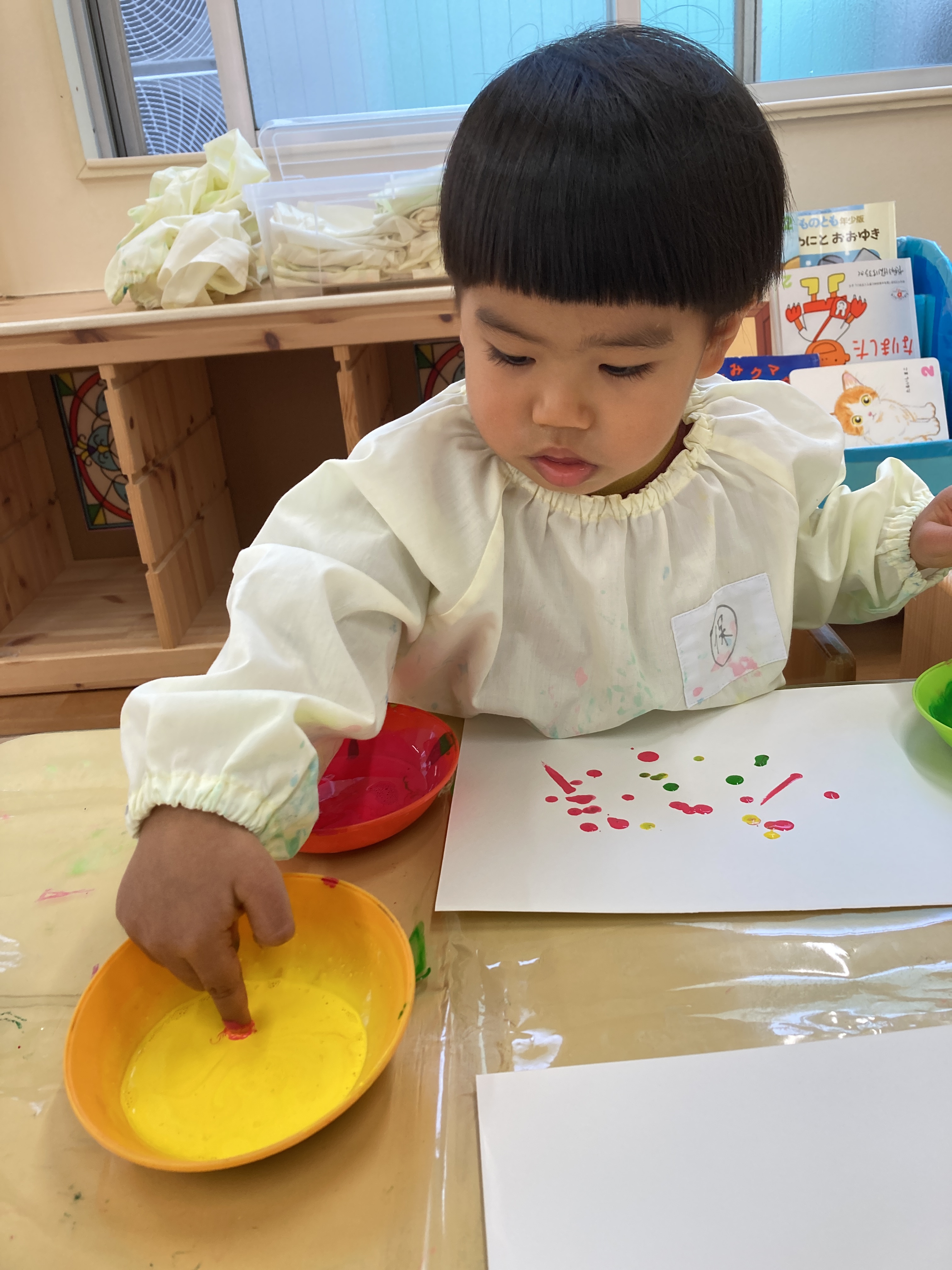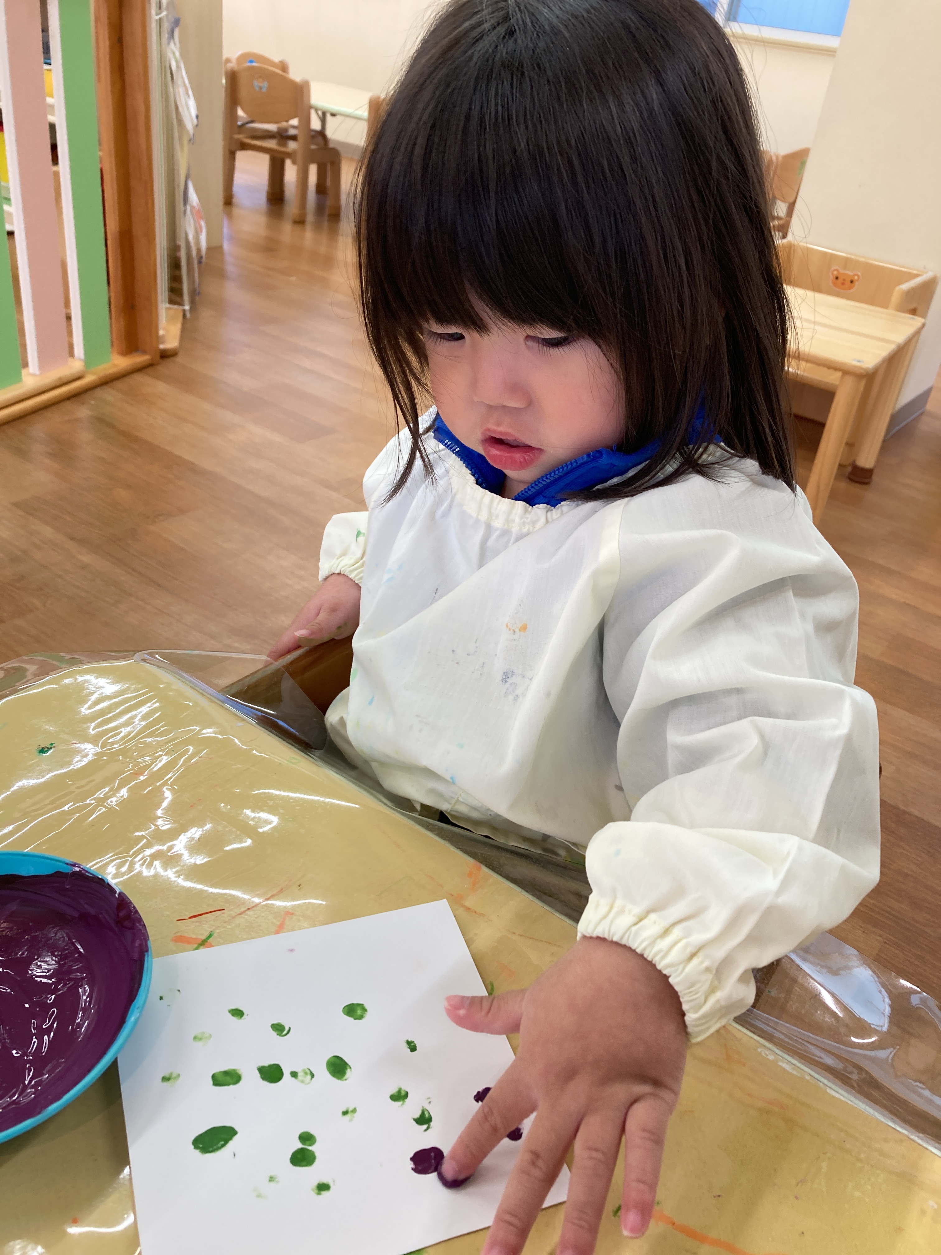 ちょんちょんと色んな色の絵の具をつけるのを楽しんでいましたよ♬