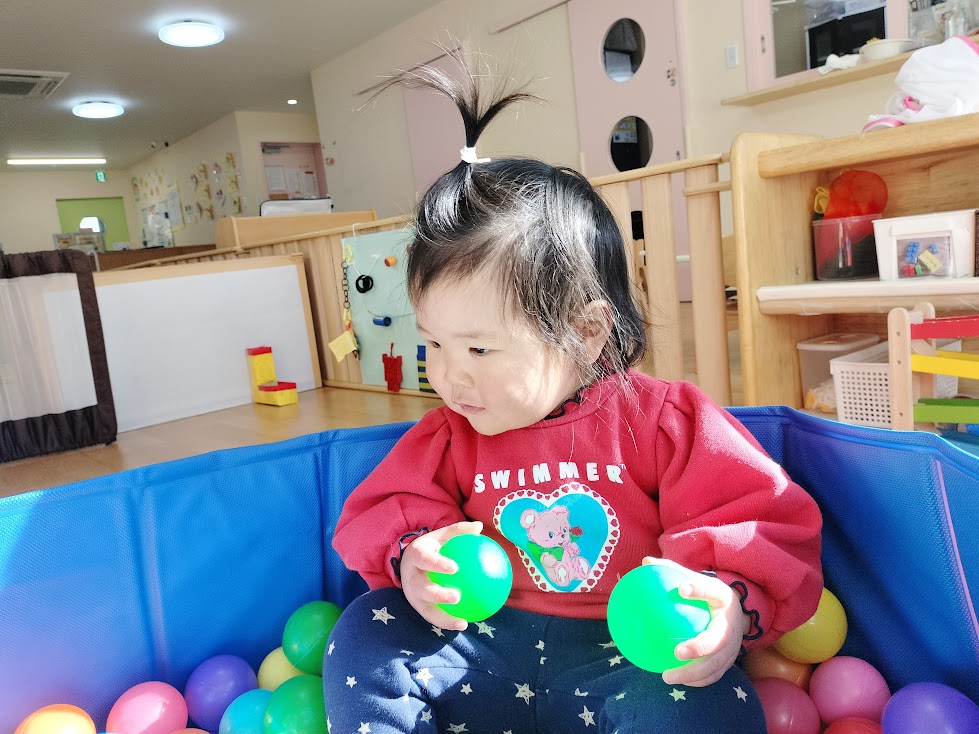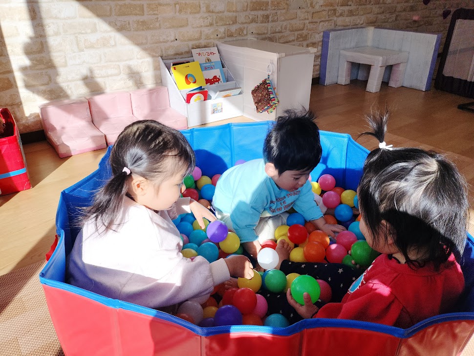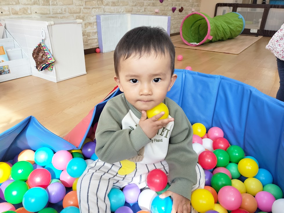 お部屋の中では、ボールプールやトンネル、お絵描き等をしてよく遊んでいます🎵