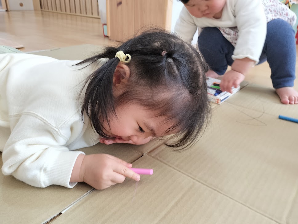 クレヨンを使って大きな段ボールにお絵描きもしました!