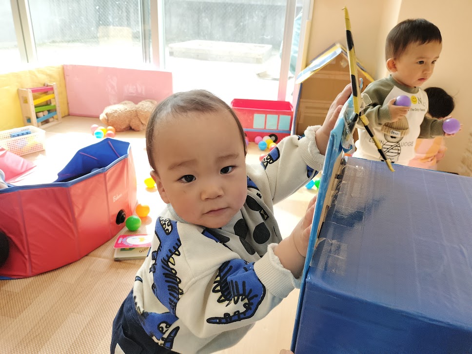 今回はあおぐみさん(0歳児)の室内遊びの様子をお届けしたいと思います!
