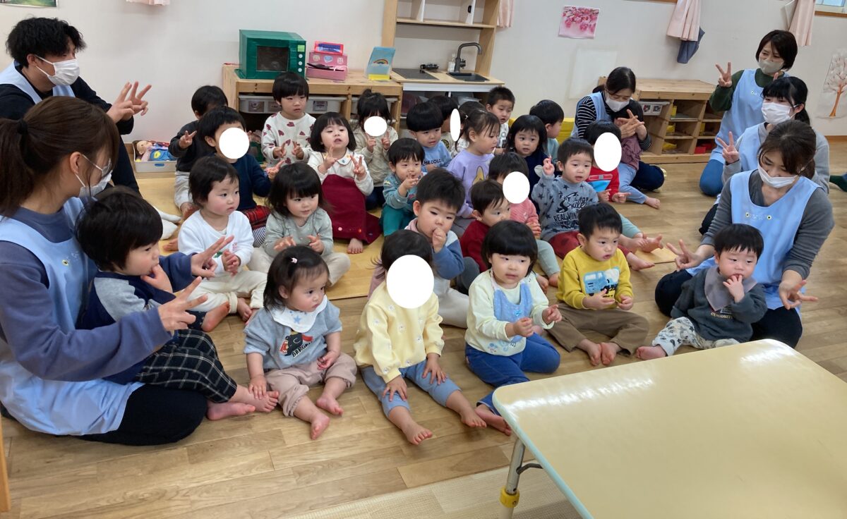 みんな大好きな手遊びで、元気いっぱい口ずさんでいました![]()