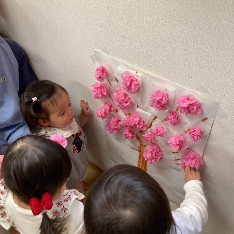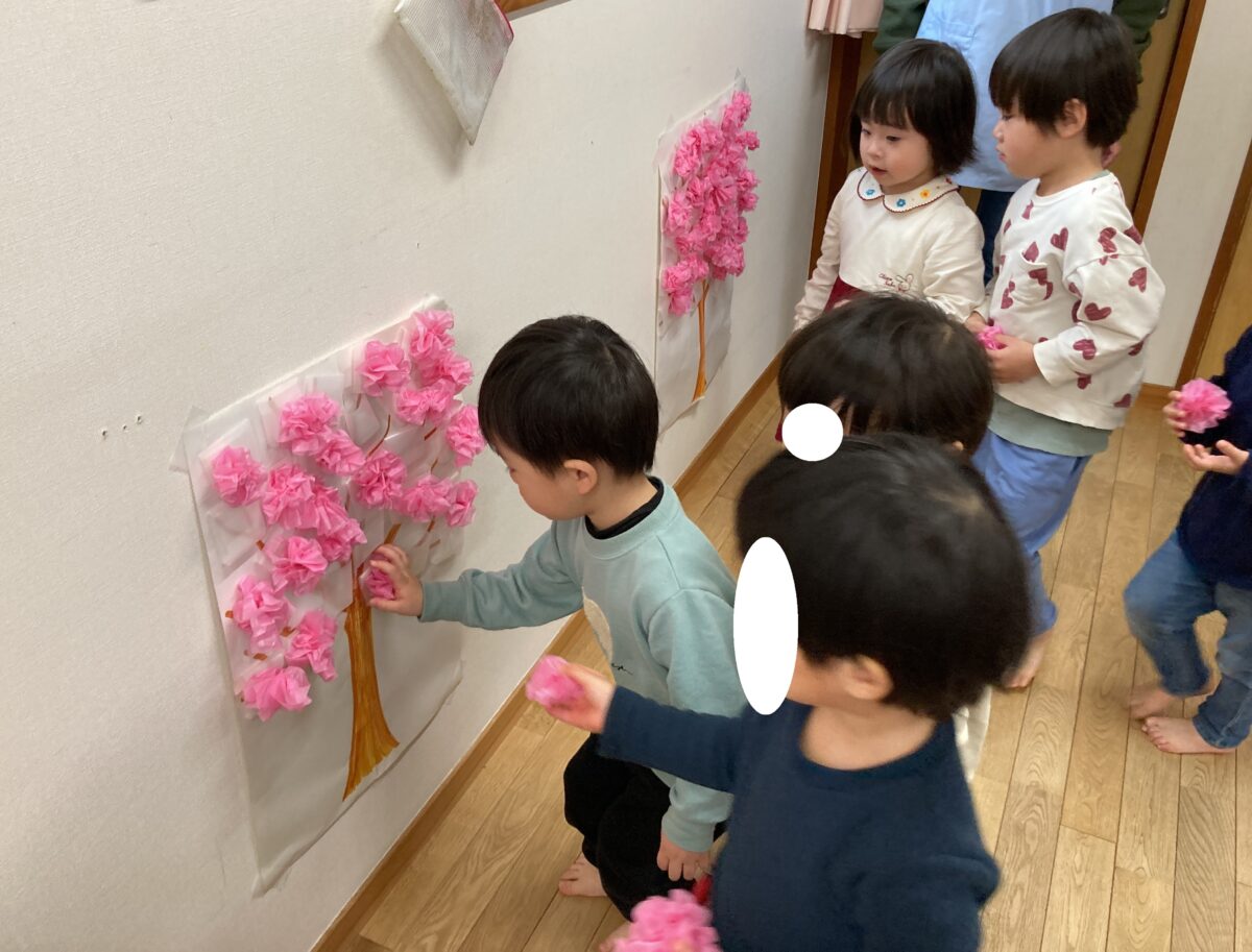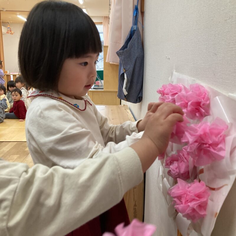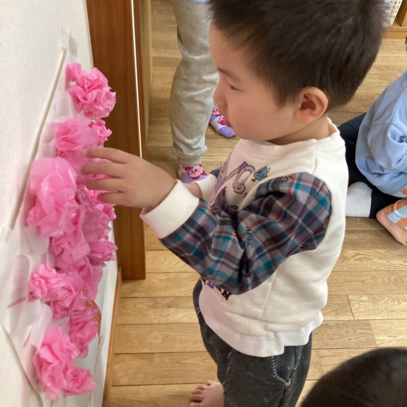 「できた!」と、みんなで力を合わせてとっても綺麗な桃の花を咲かせることができました🌸
