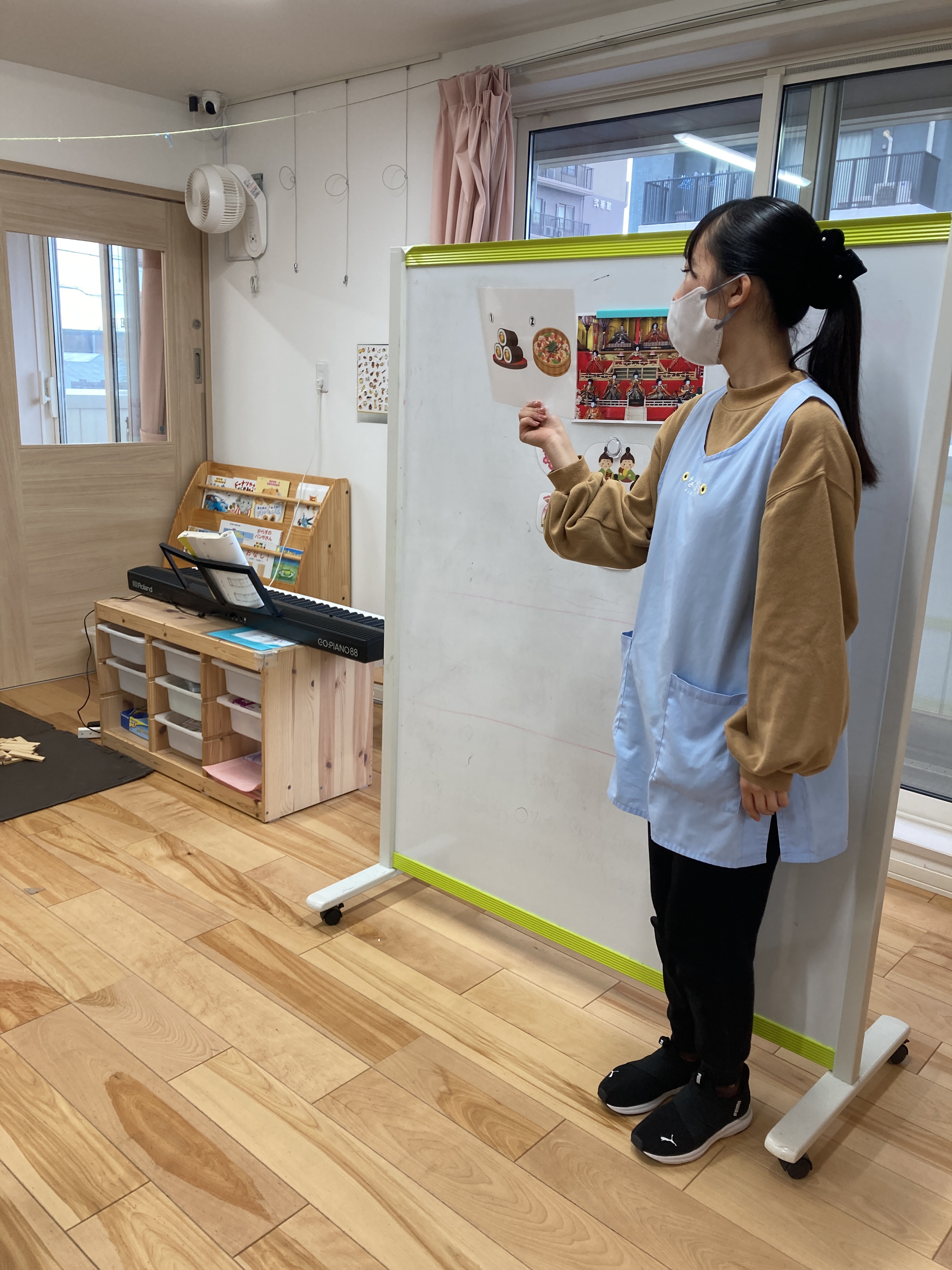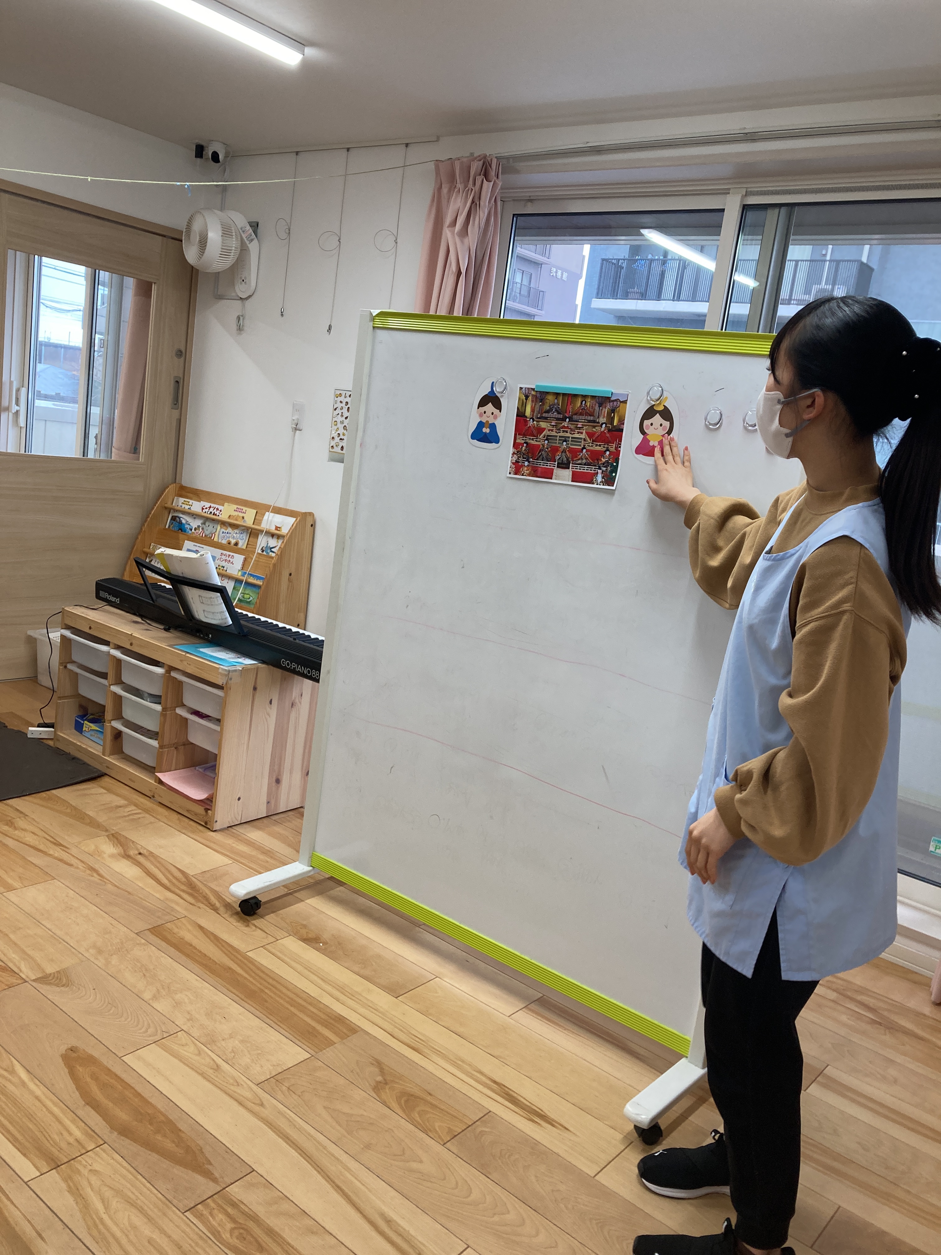 ひなまつりクイズでは、「ひなまつりに食べるお寿司はなーんだ」「ひなまつりに飾るお花はなーんだ」などの問題に、元気よく手を挙げて答える姿も見られました![]()