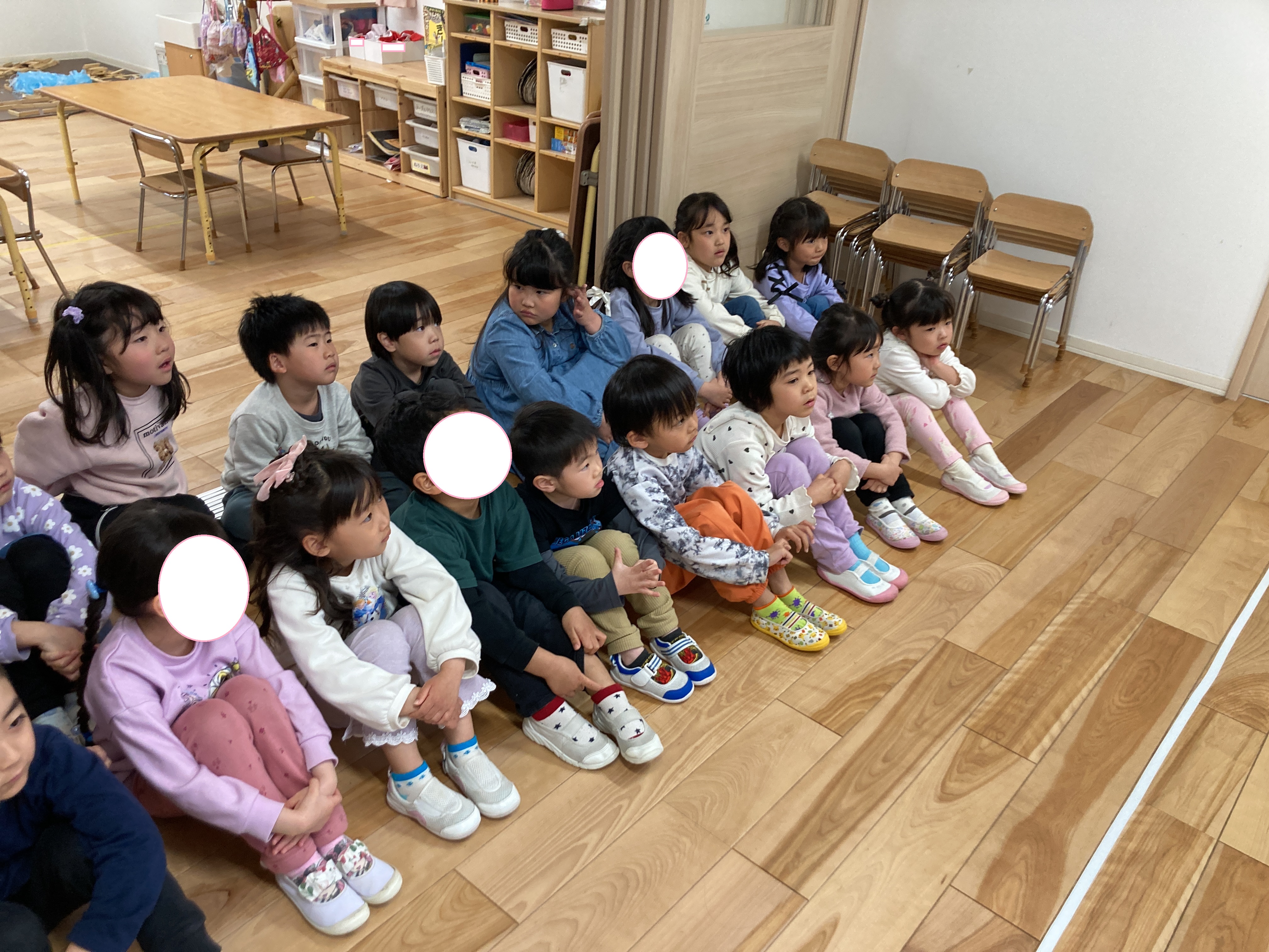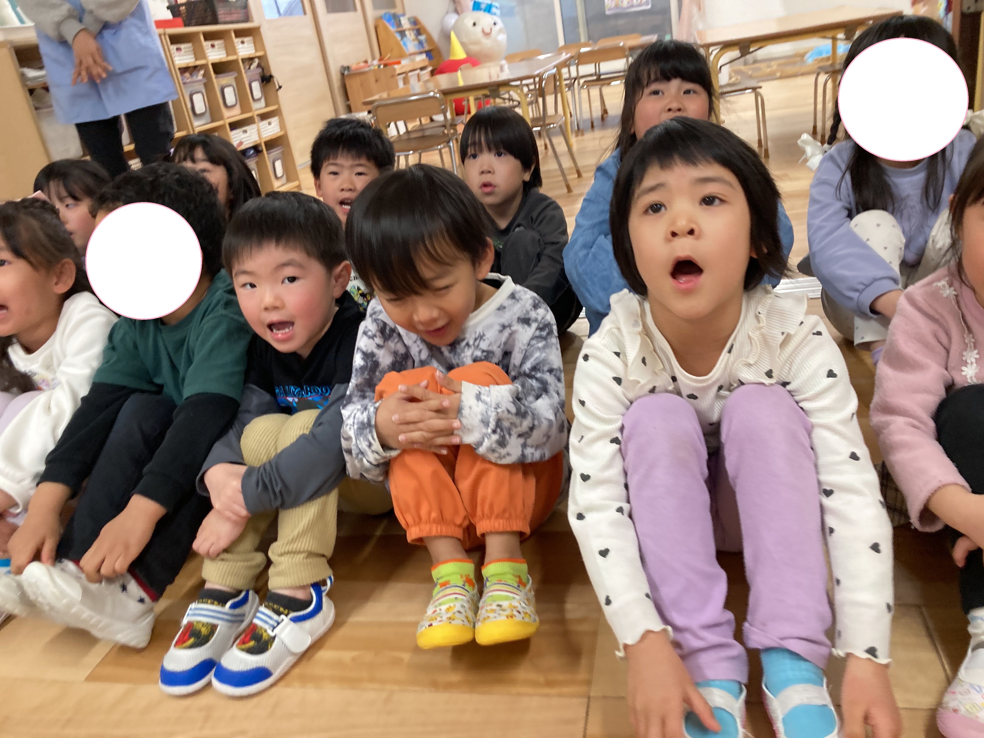 子どもたちは真剣な表情で耳を傾け、保育士の問いかけに対して答えながら参加していました![]()