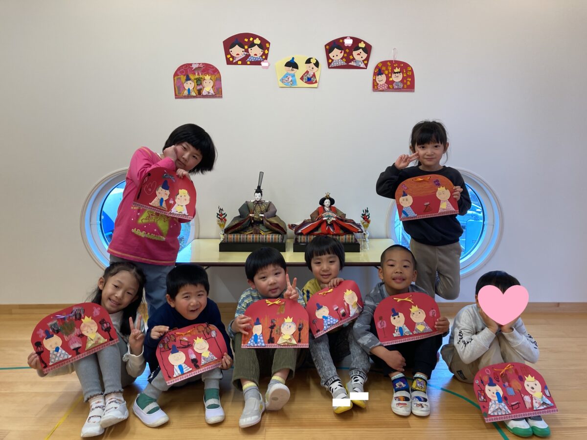 最後に子どもたちが製作したお内裏様、お雛様と一緒にパシャリ📸