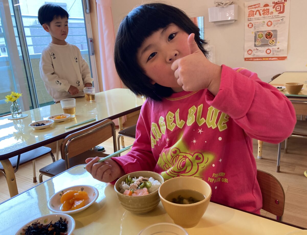 「ひな祭りに食べる特別な食べ物何かわかるかな?」と聞くと