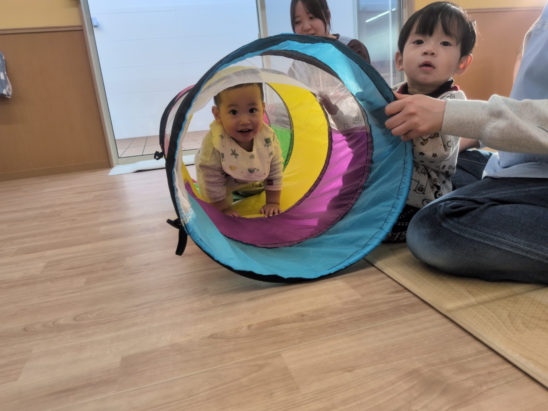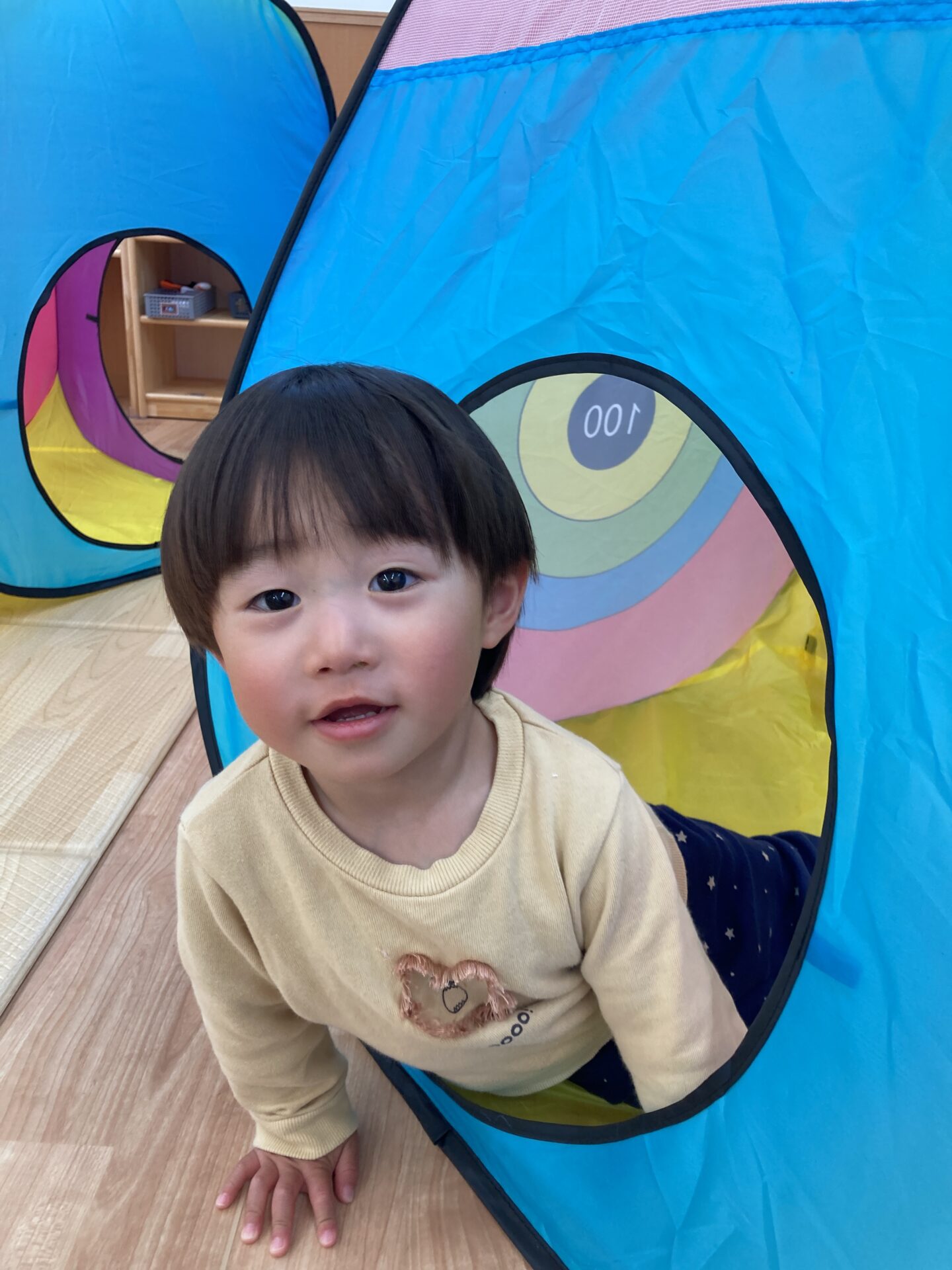 自分でお布団を顔まで引っ張りあげて保育者が「ばあっ!」と布団を下げるという流れを楽しんでいてとても癒されました