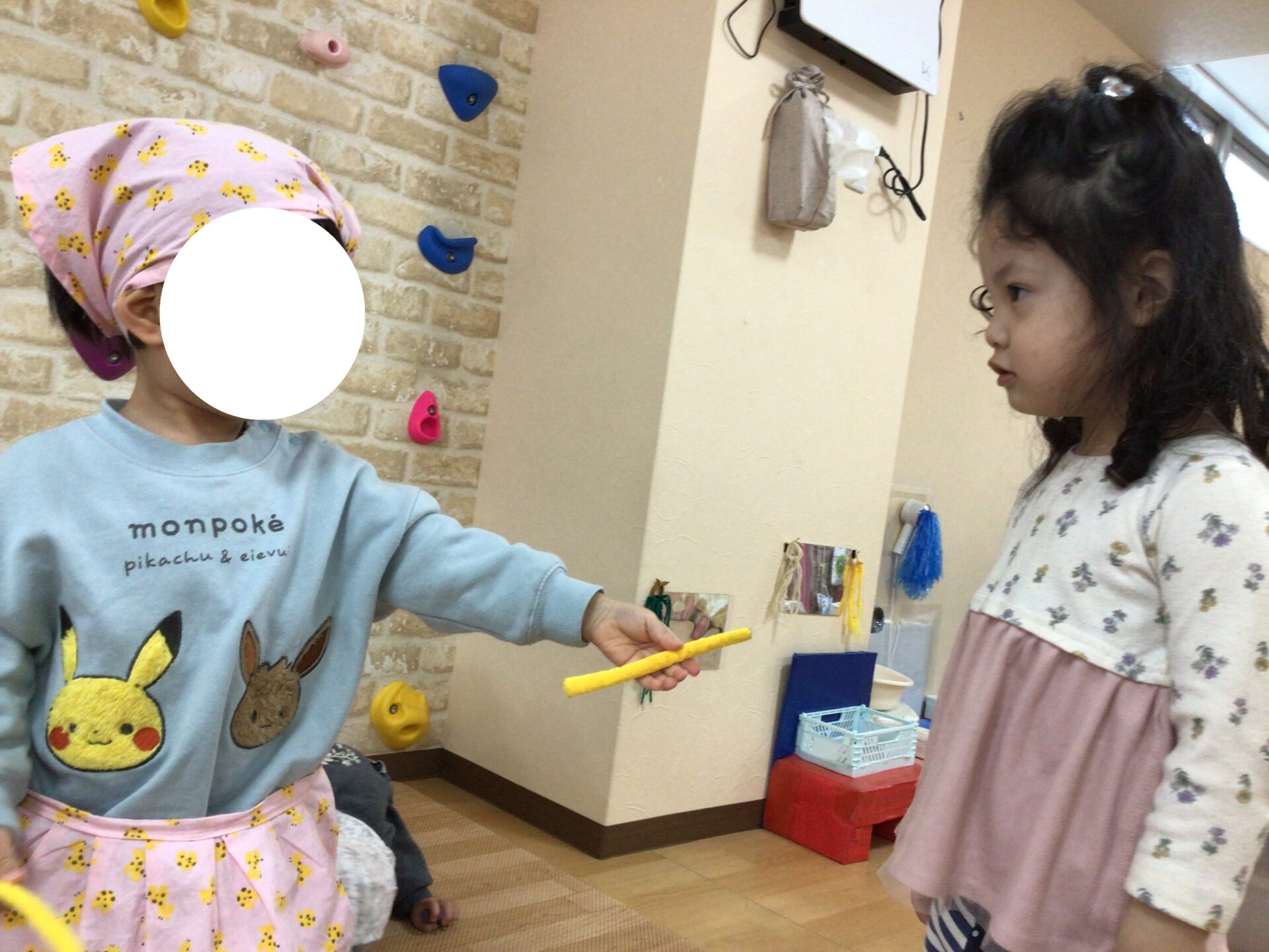 子ども同士でも「かして」「まっててね」などのやり取りが増え、関わり合いながら遊ぶ姿も見られますよ。