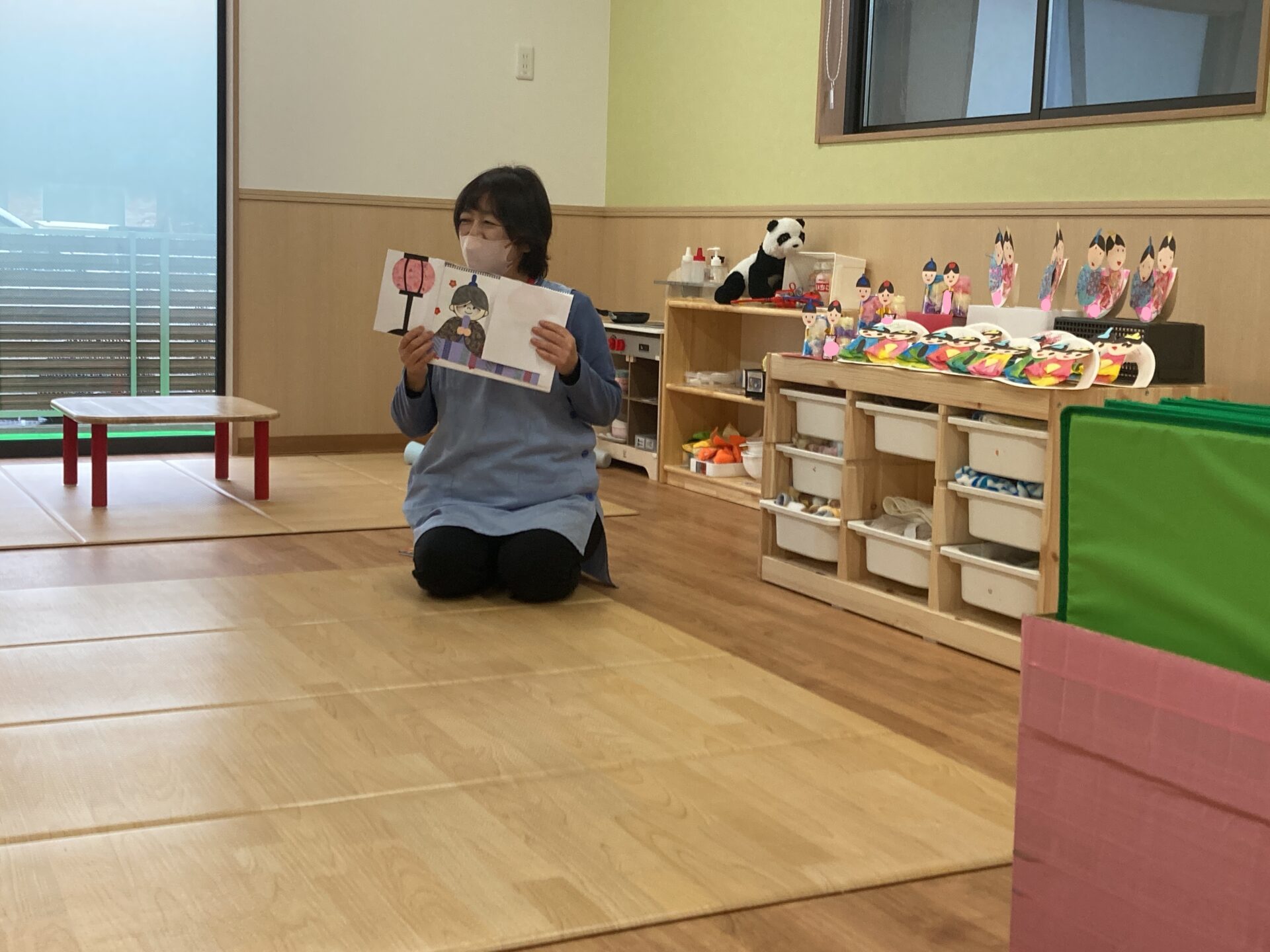 先生から、ひなまつりのお話のスケッチブックシアター。