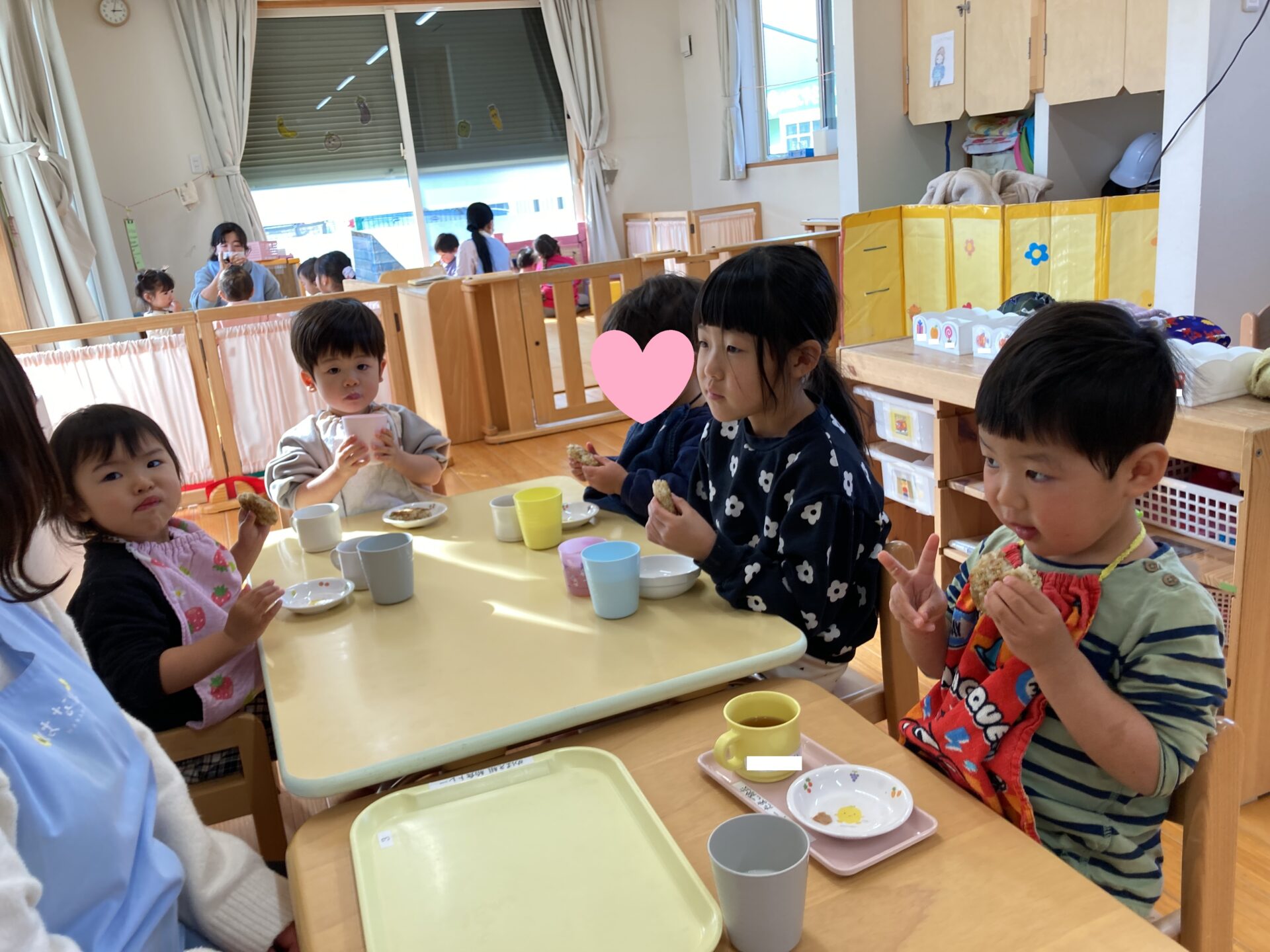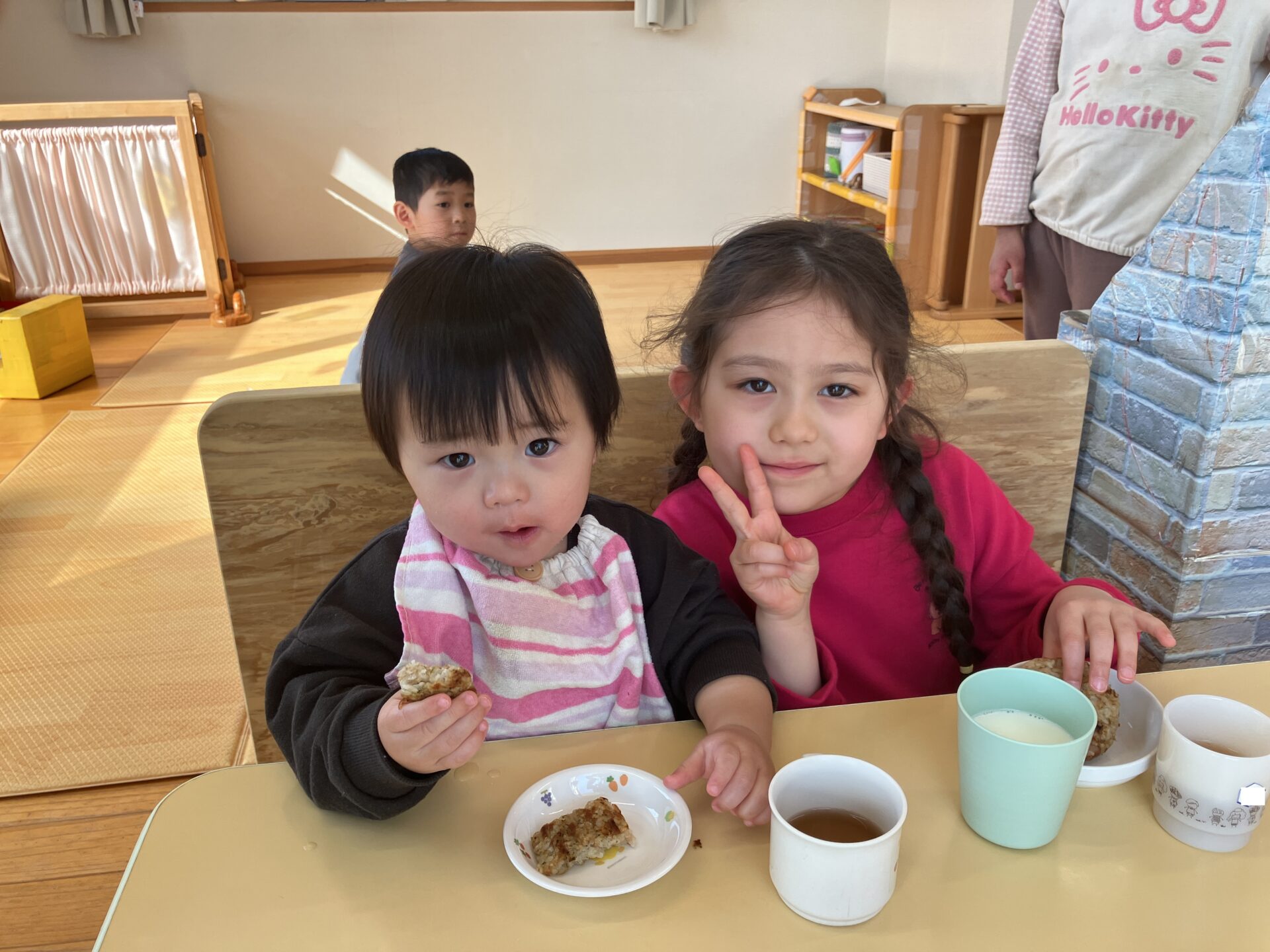 おやつも一緒に食べました!この日のおやつはツナと青のりのおやきでした