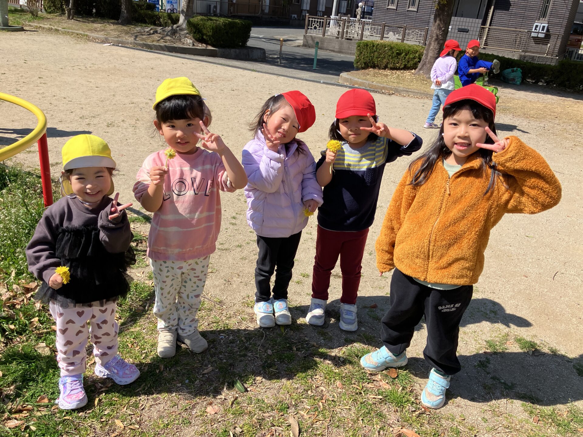 公園に到着すると、どろけいをしたり花を摘んだりして交流を楽しみました