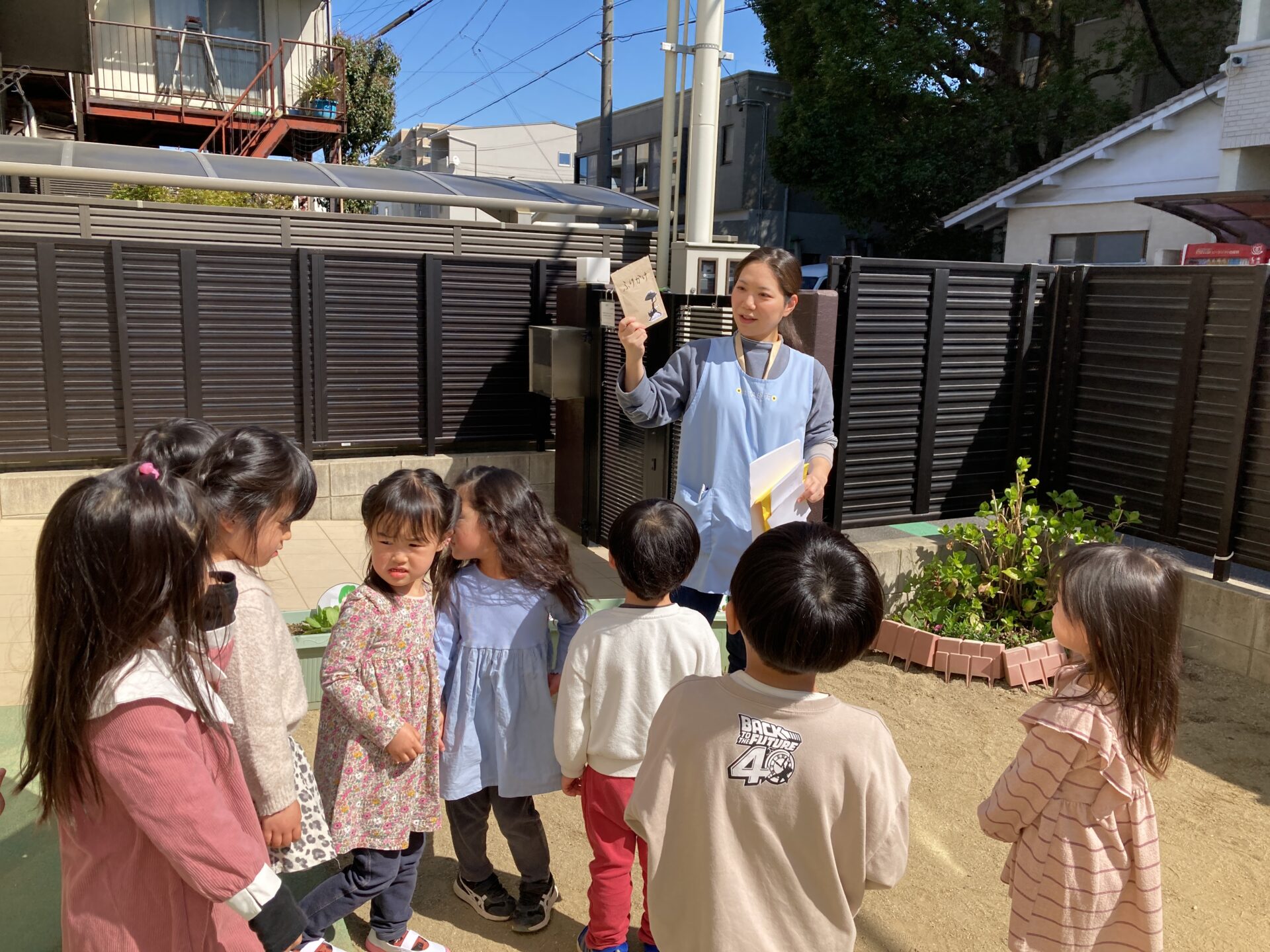 どうやら、絵本「まゆとおに」からまゆがやって来て、梅干しを持って行ってしまったようです😨代わりに何かおいしいものを園内に隠したとのこと。