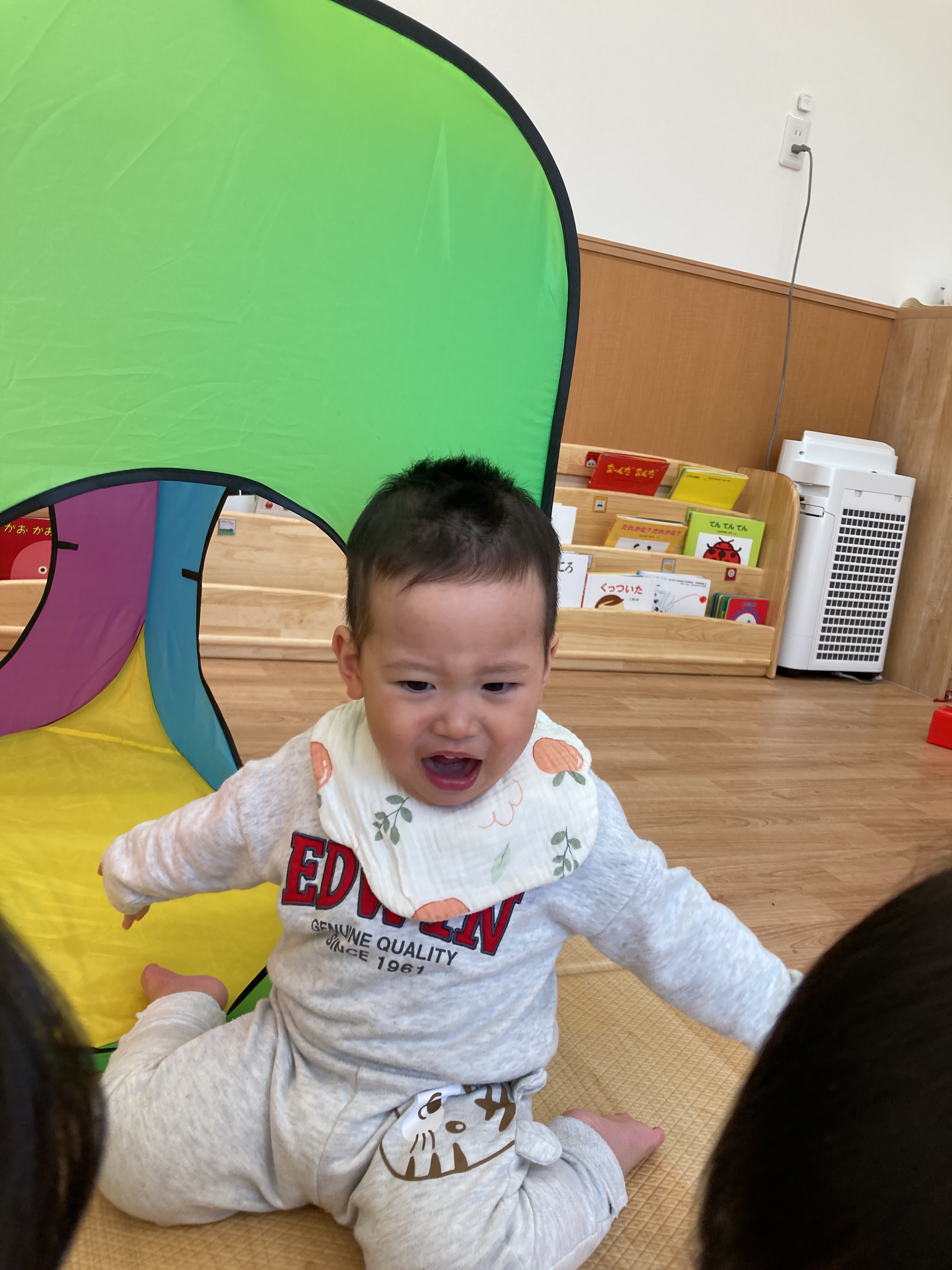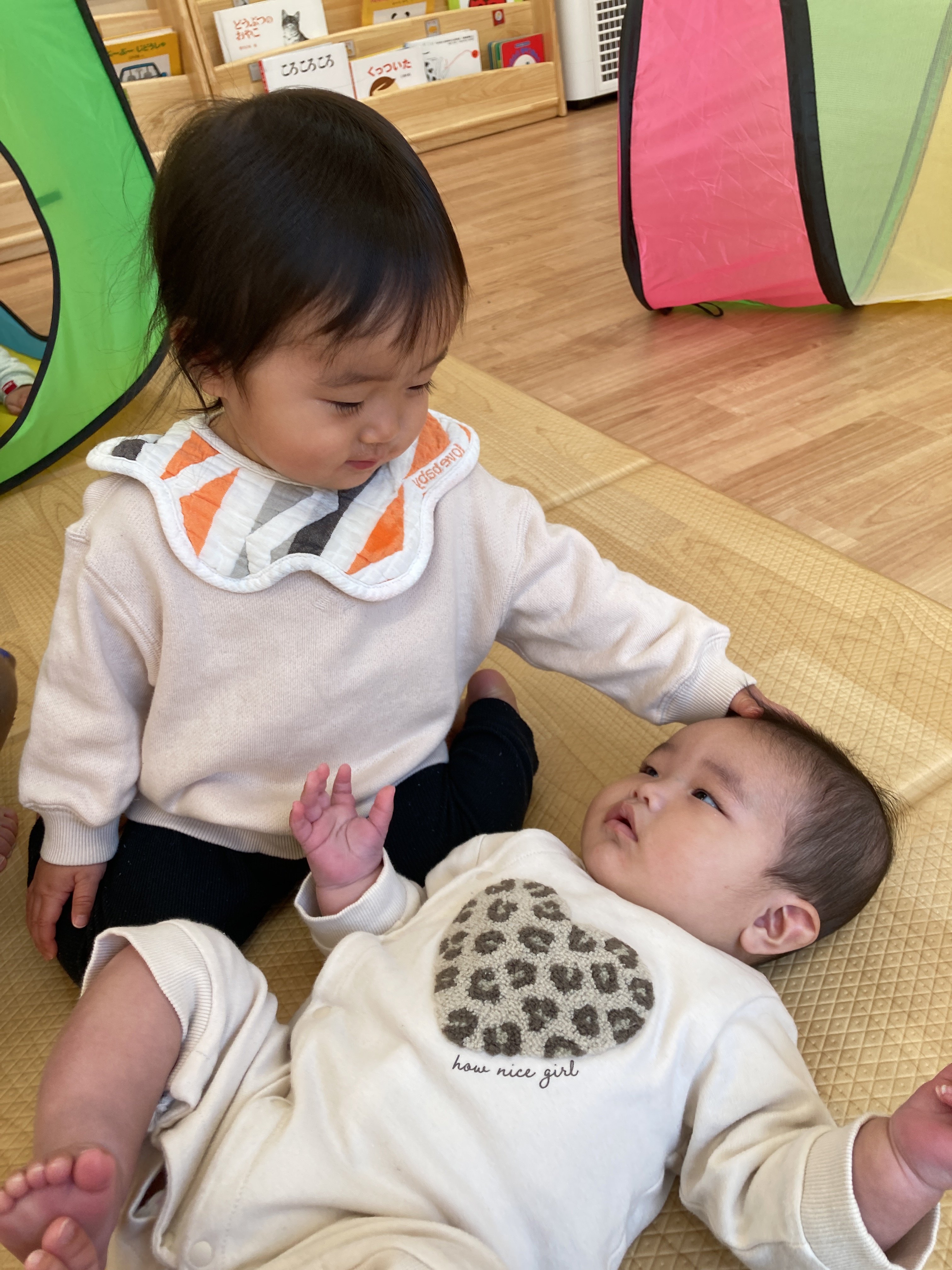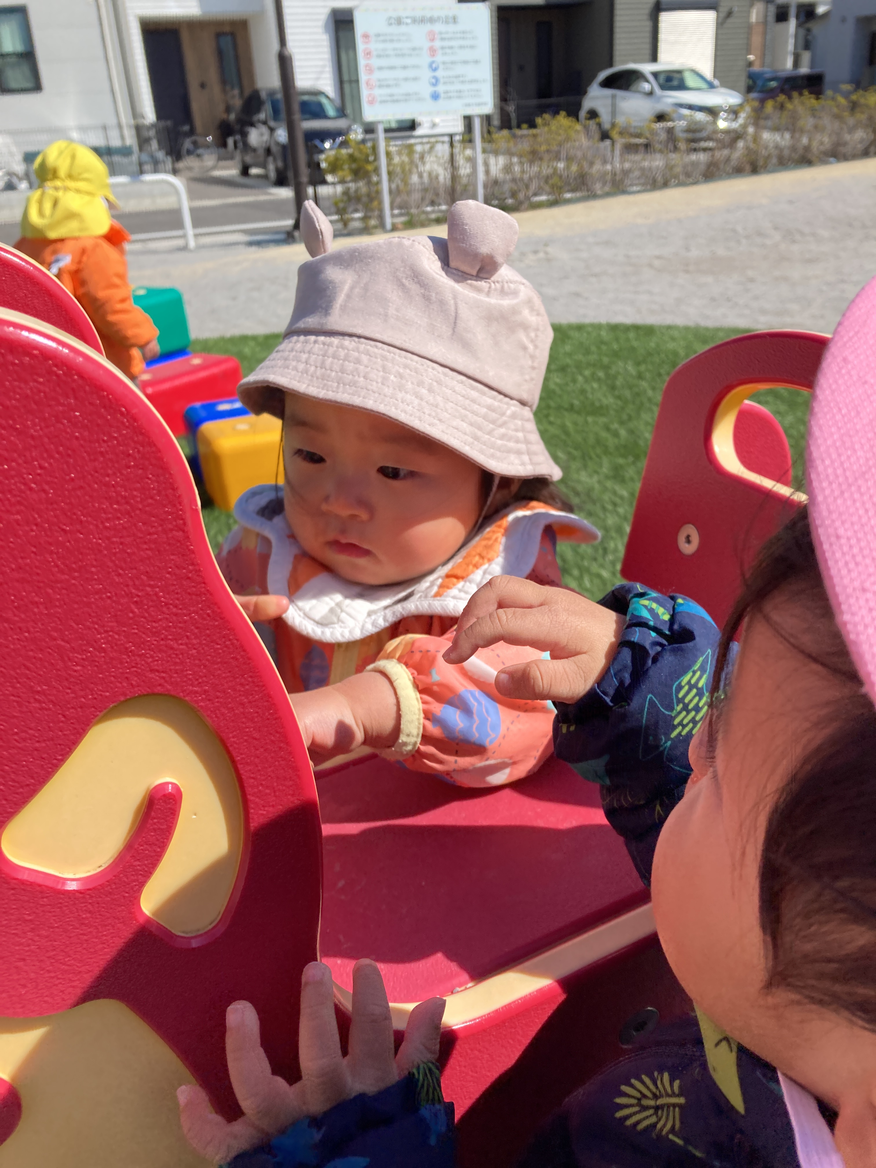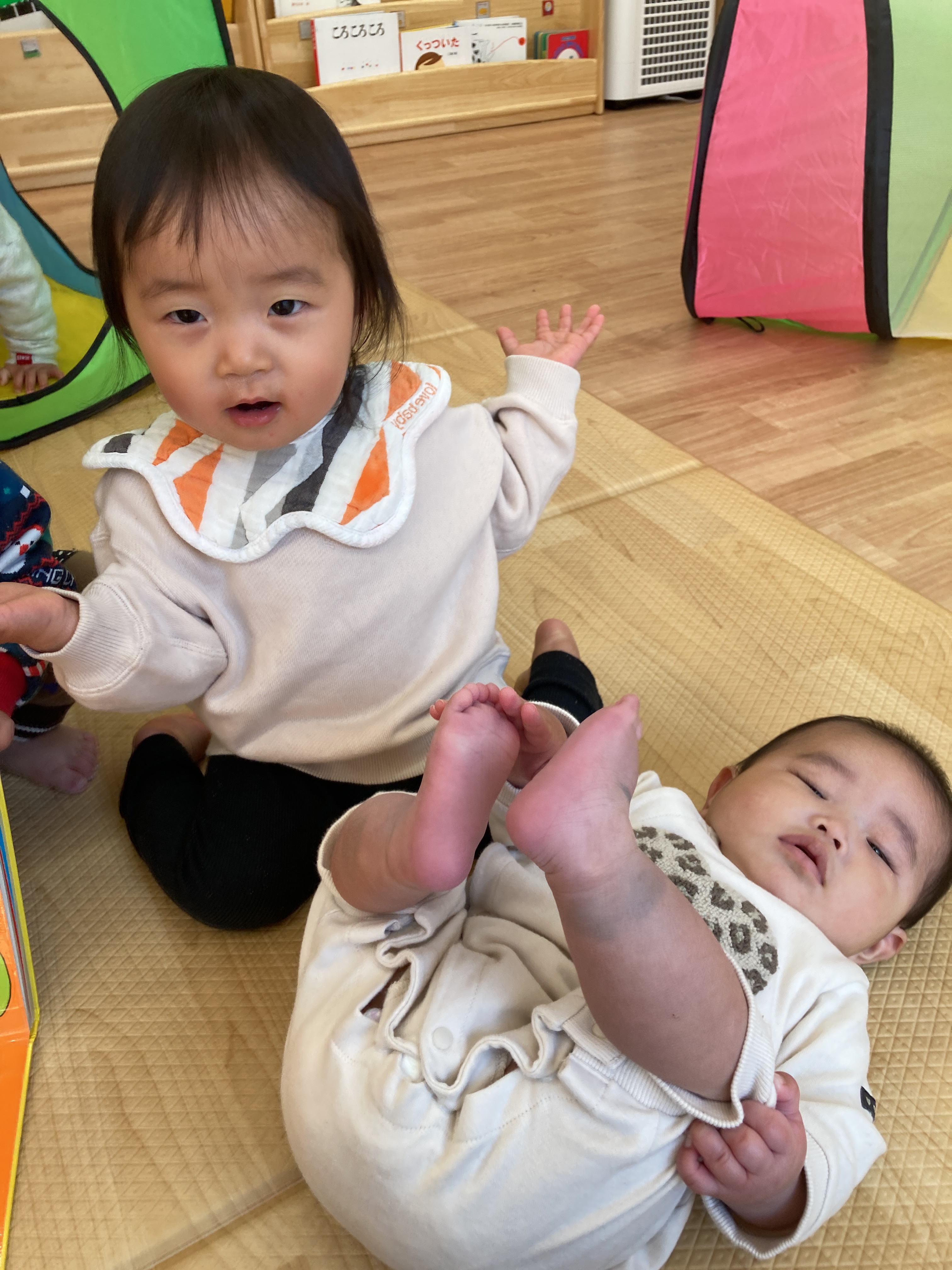その場面を見ていたお友達も一緒にしてくれるようになり、最終的には三人のお友達が代わる代わる「いないいないばあっ!」をしてくれていましたよ![]()