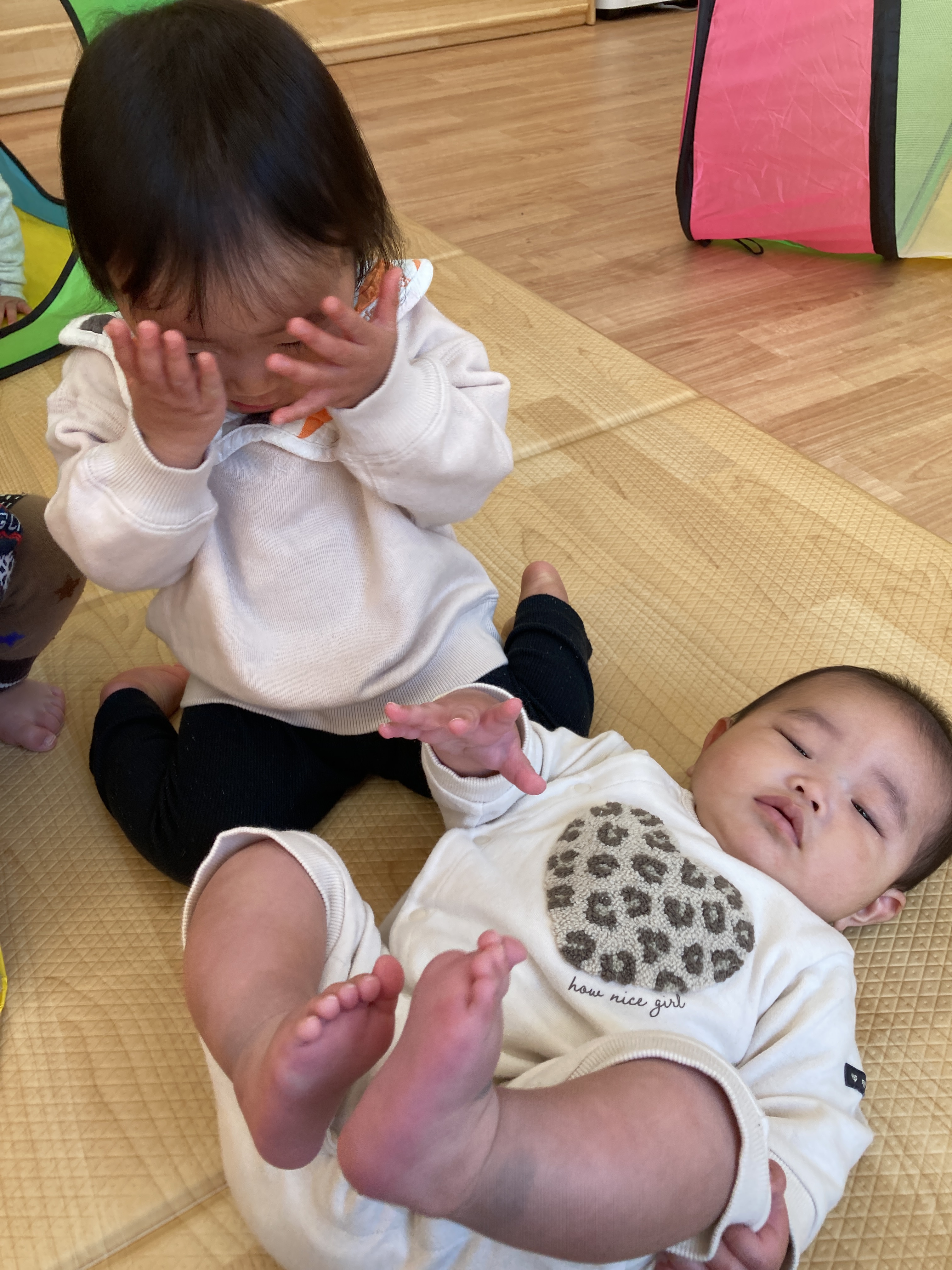 ふとしたタイミングで「いないいないばあっ!」をしてくれている姿が見られました![]()