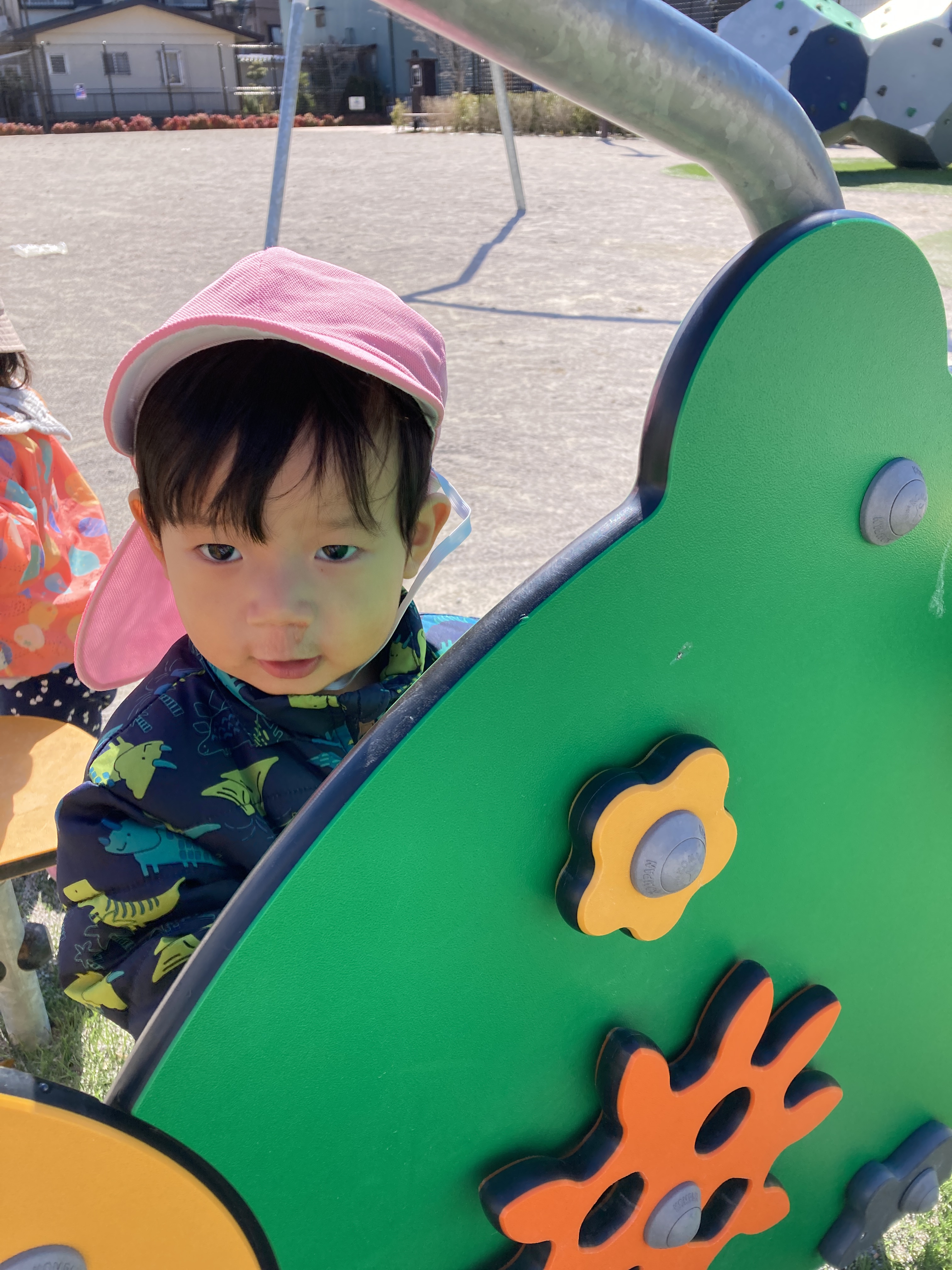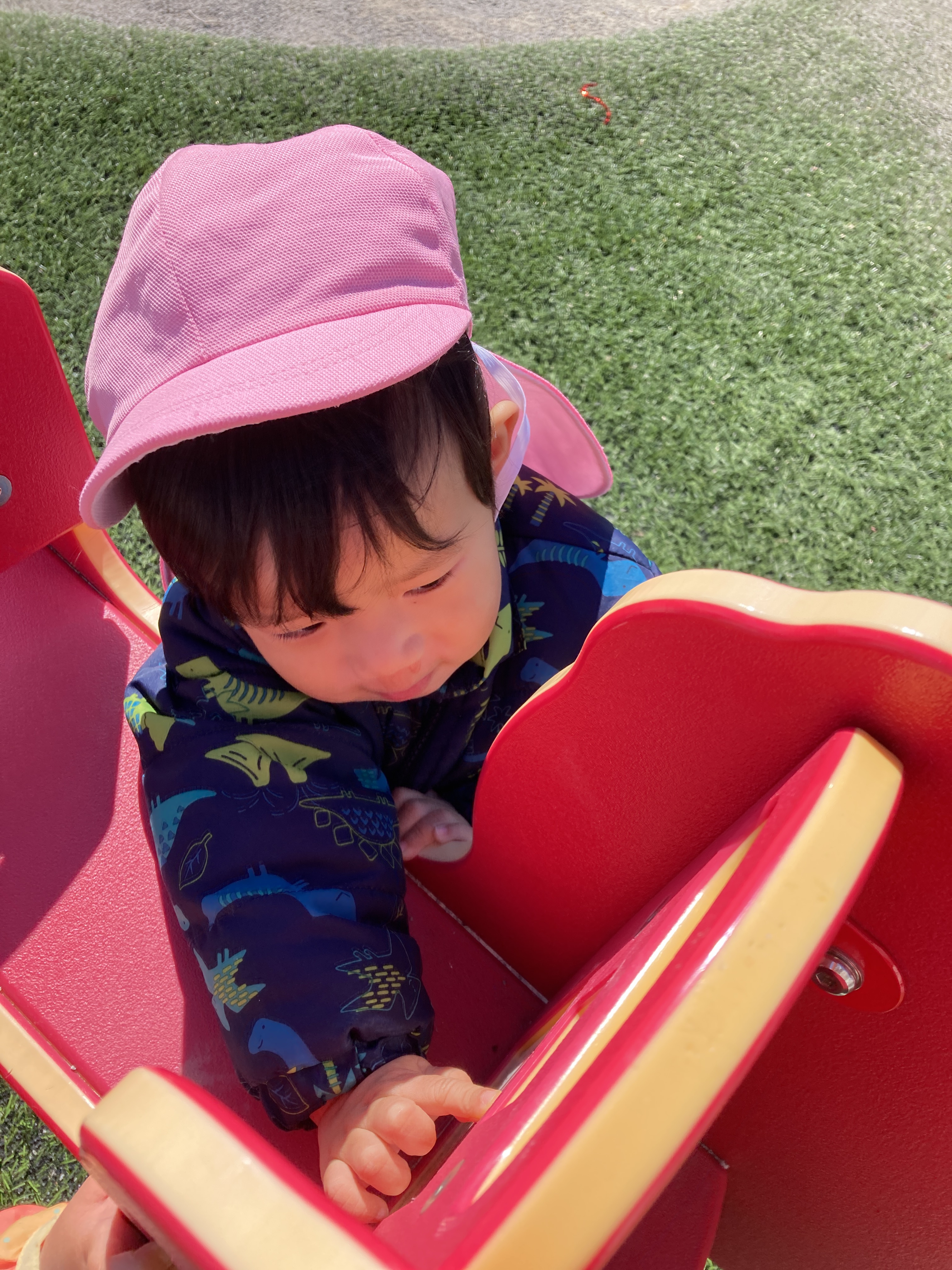 公園に着くと、公園内のオブジェクトに興味を示して楽しく遊ぶ姿が見られました![]()