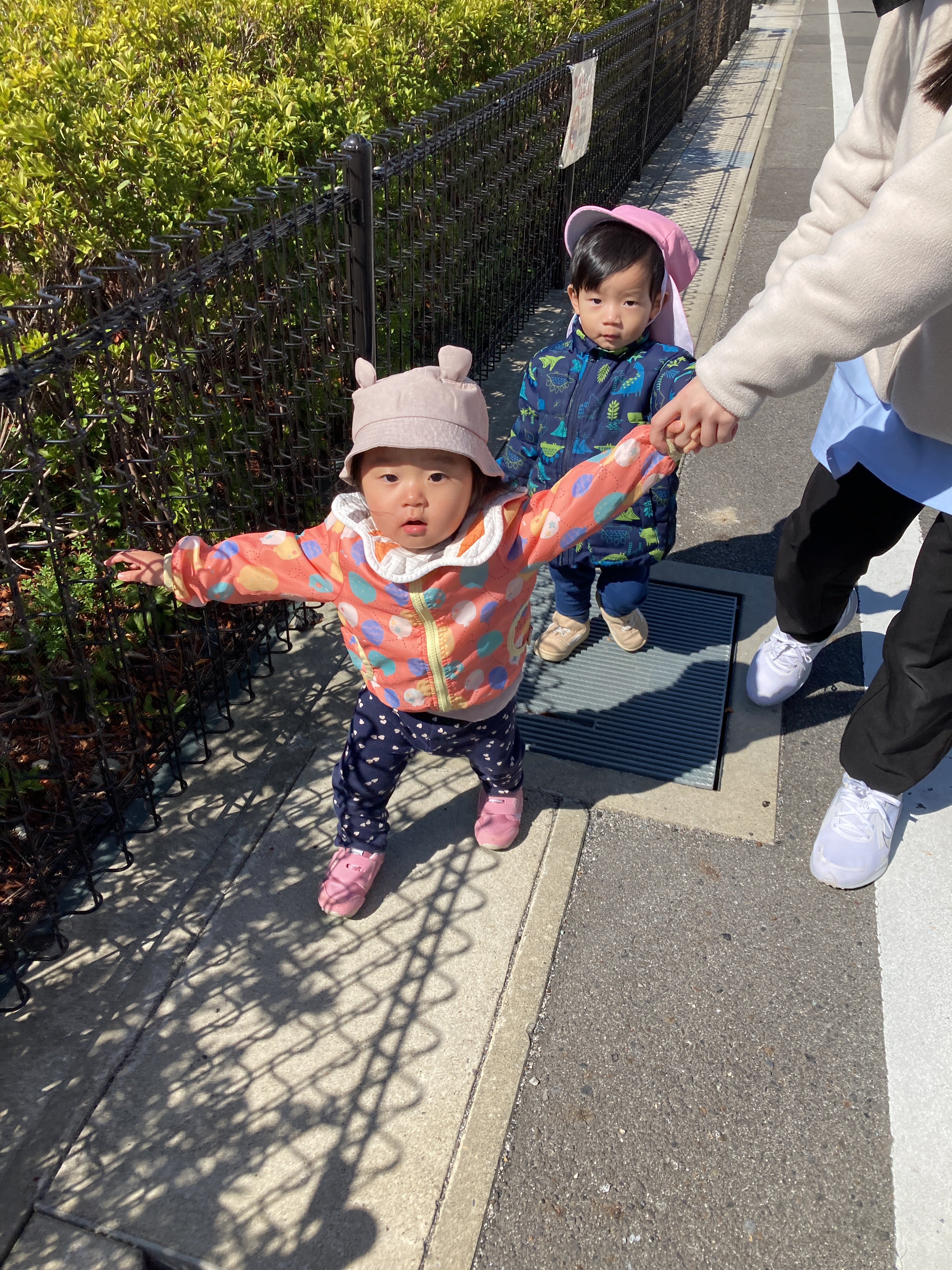 保育者と手をつないで上手に歩くことができていますよ![]()