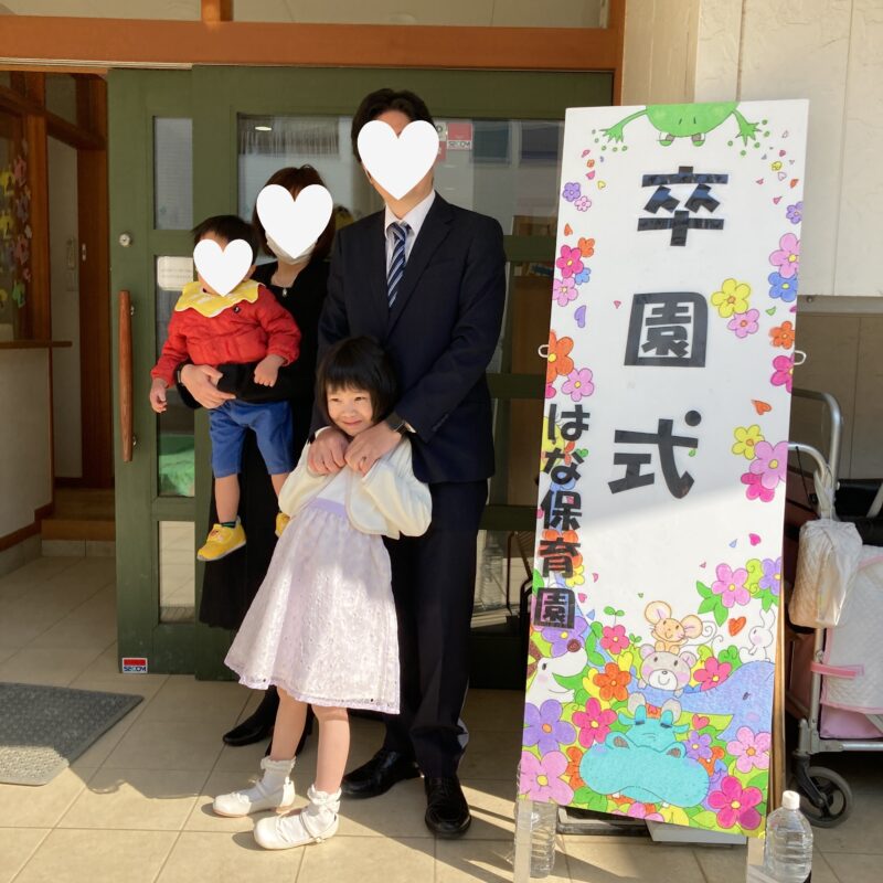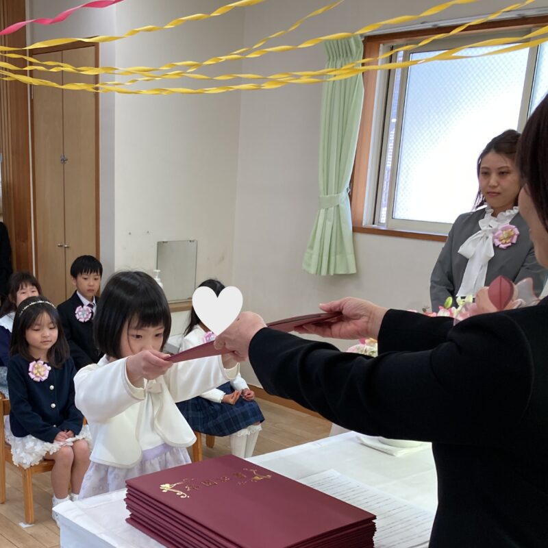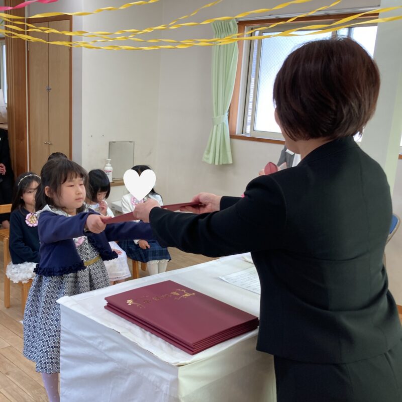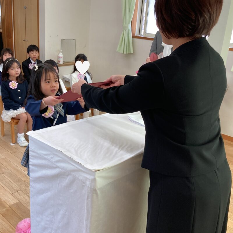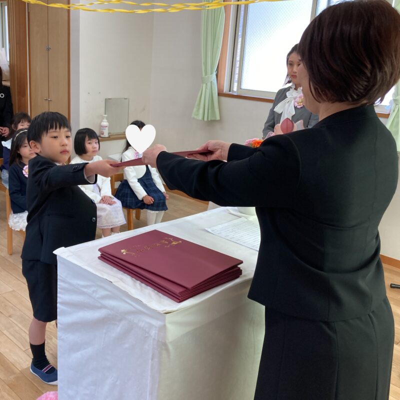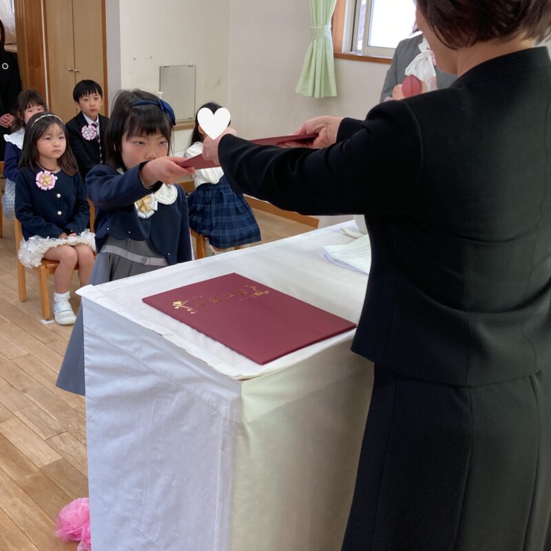 担任の先生から一人ひとり名前を呼ばれ、「はい!」と元気よく返事をして卒園証書を受け取る姿に、大きな成長を感じました