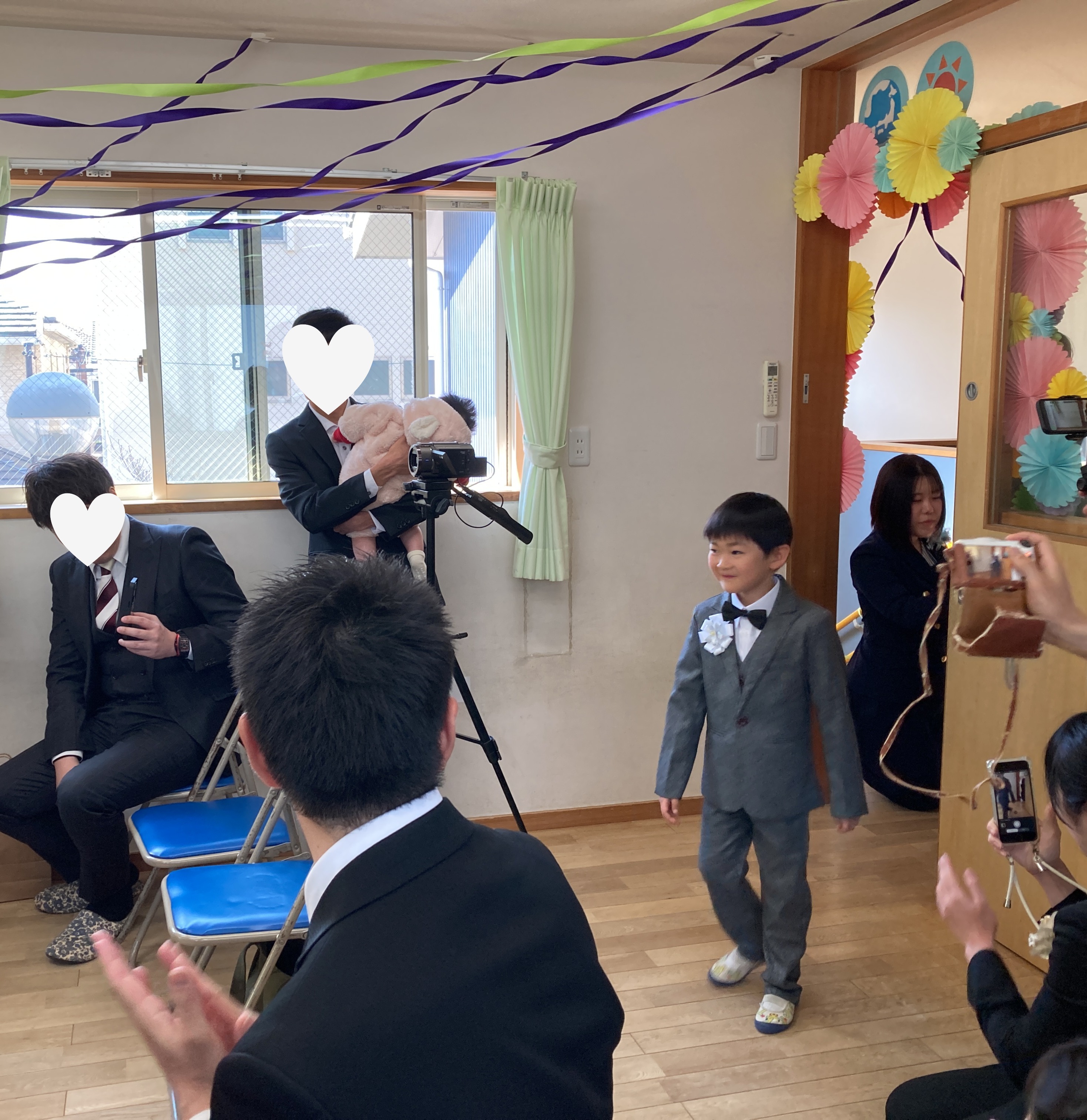 入場の音楽が流れると、職員からの手作りコサージュを胸につけ、胸を張って堂々と歩く姿がとても印象的でした!