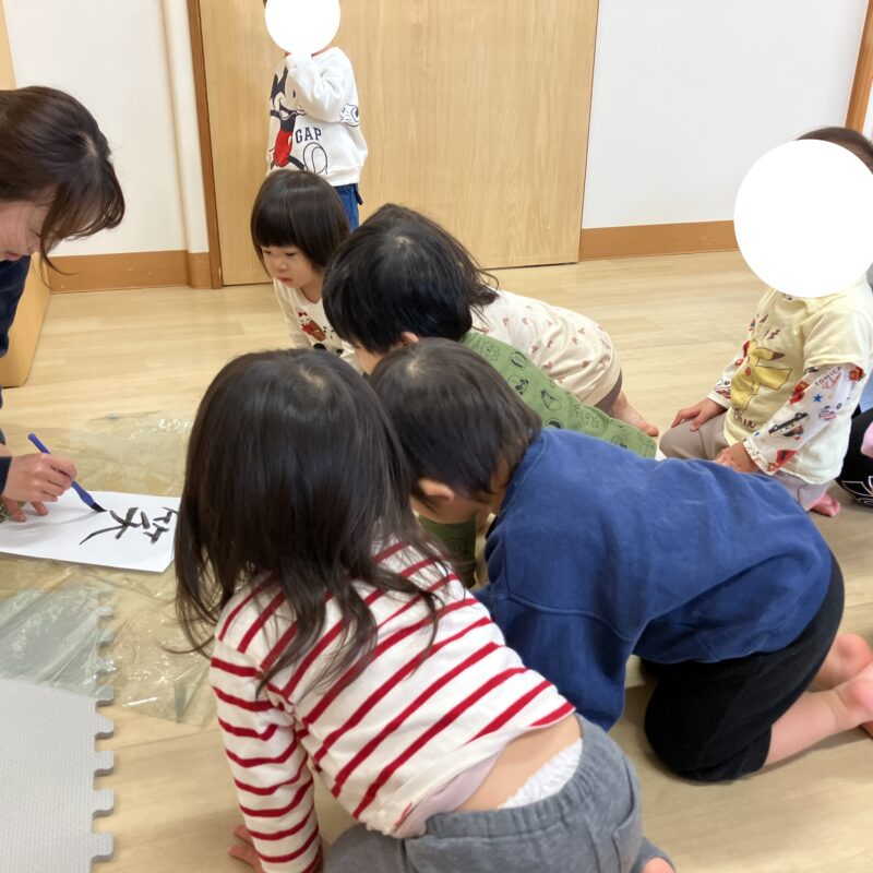 たんぽぽ組(1歳児)🌼書き初めに挑戦!