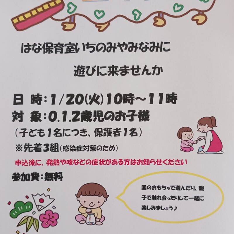 | 保育時間 | 7:30~18:30(日祝・年末年始除く) |
