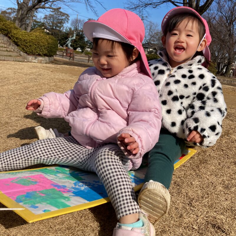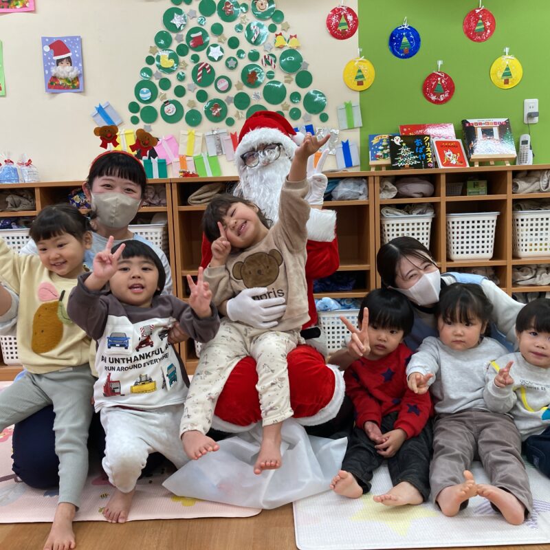 室内では一つの部屋で0才から2才の子どもたちが歌ったり、踊ったり、笑ったり、泣いたりと毎日がとても賑やかで楽しい保育室です。皆さんも是非一度のぞいてみて下さい。子供たちの可愛い姿にのせて幸せパワーを送ります。